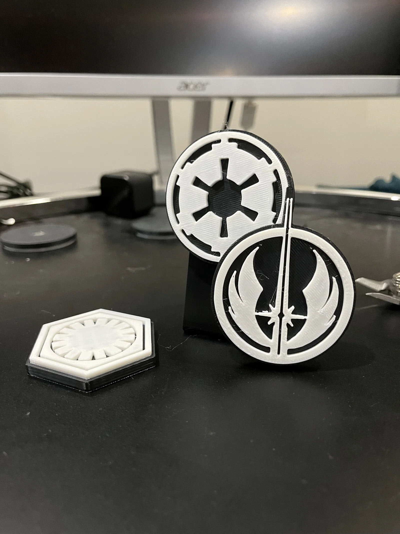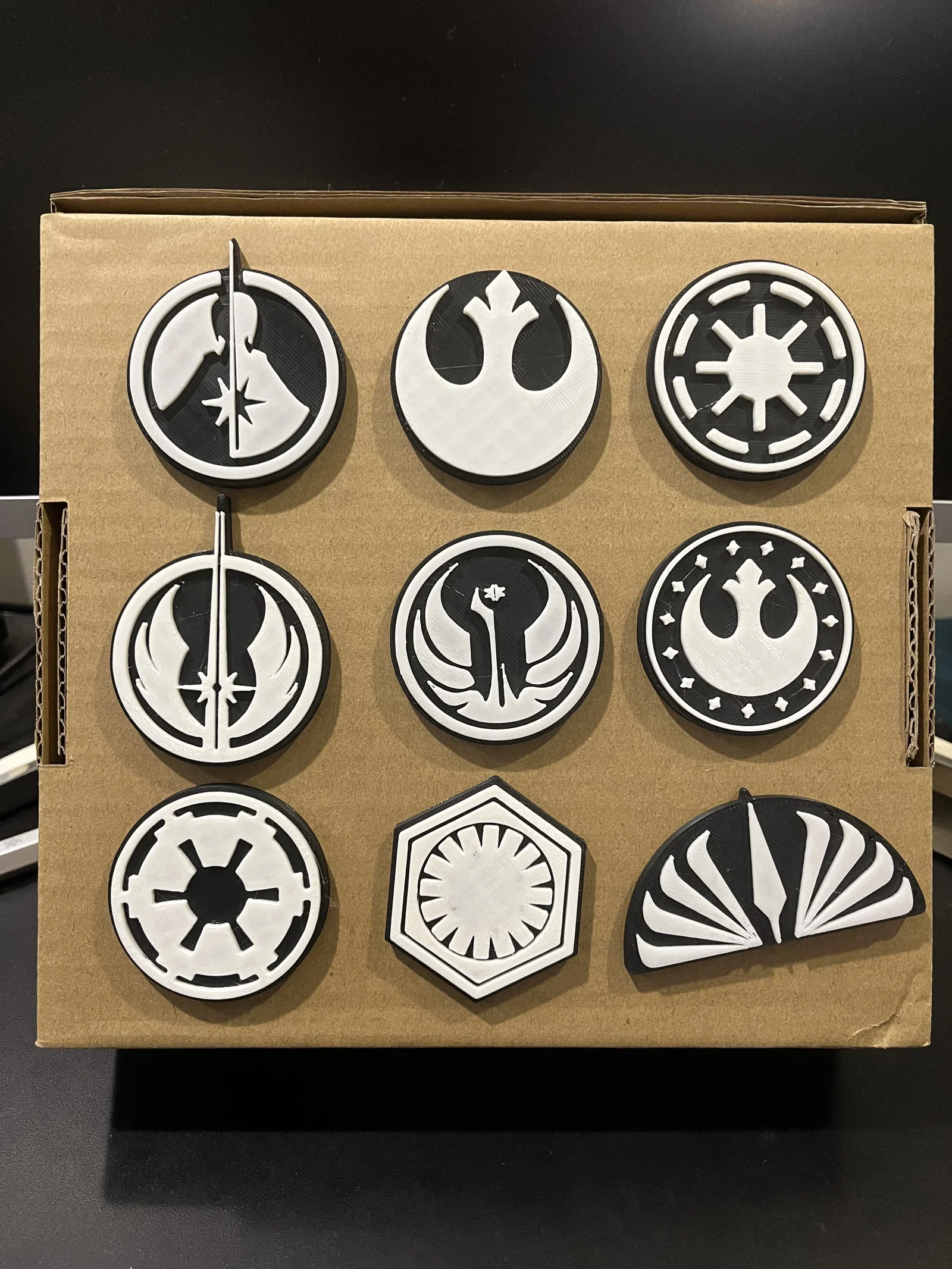 Bộ nam châm Star Wars để trưng bày hoặc dán tủ lạnh. Cần filament swap để đổi màu và dùng nam châm 8*2mm (có thể mua trên Amazon). Có kèm file stand để trưng bày nhưng không bắt buộc.