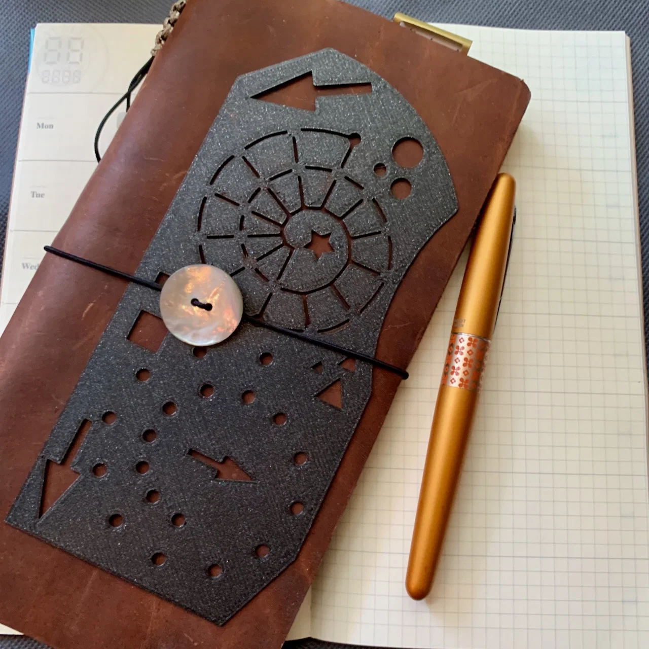 Kích thước khoảng 3.25" x 7" và mỏng đủ để dùng làm bookmark khi cần. Nó vừa khít trong Traveler's Notebook size tiêu chuẩn như bạn thấy trong hình, nhưng cũng sẽ hợp với nhiều loại sổ khác nữa!