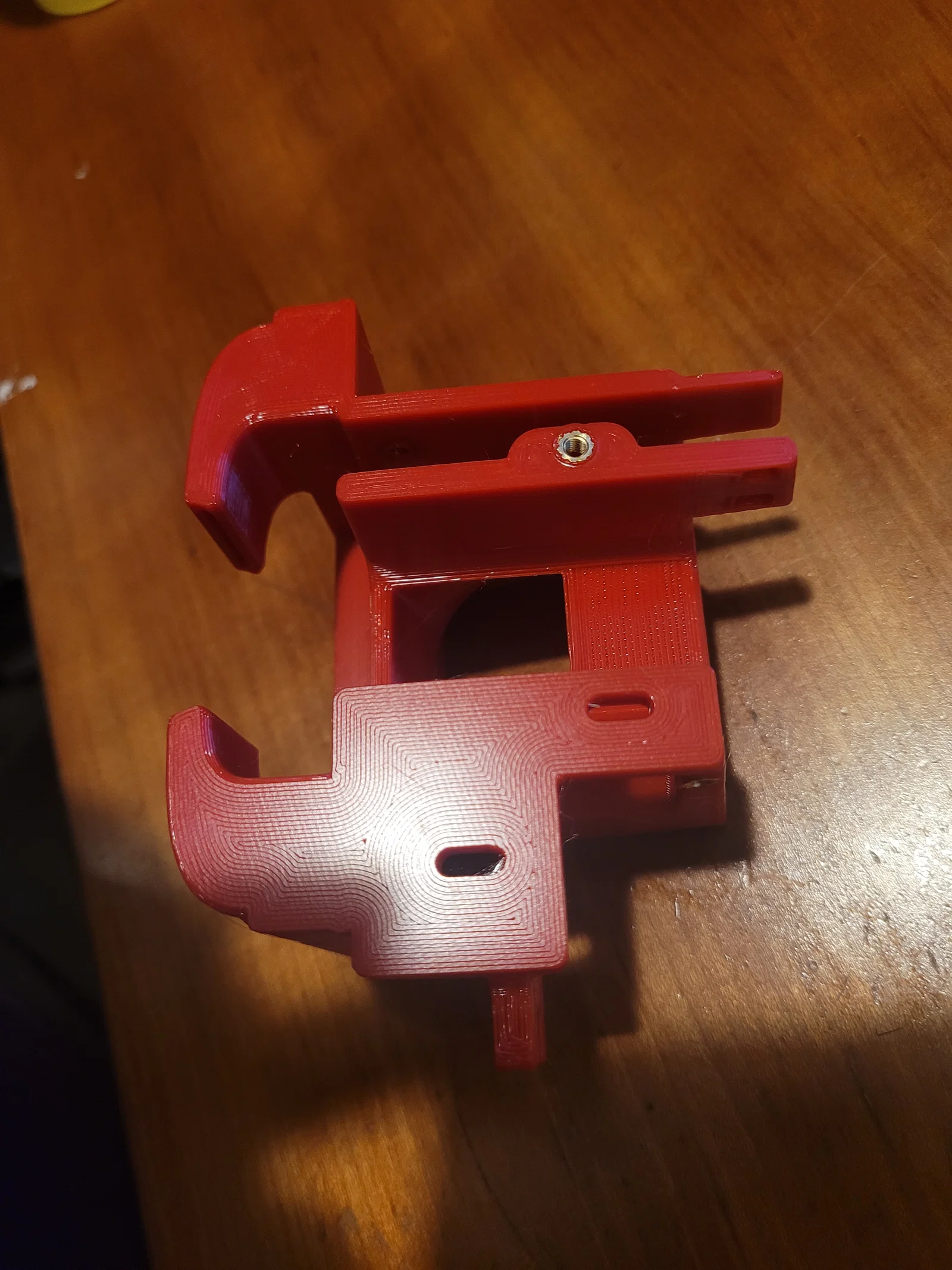 Nó fit Ender-3 PRO của mình rất chuẩn và không bị đụng cảm biến end stop trục X. Mình in bằng PETG 0.3mm/0.6mm, infill 10% với 3 walls ( Simon_Szi_ khuyến nghị infill 30% trở lên, nhưng mình giảm xuống 10% để giảm trọng lượng), nozzle 0.6mm. Cần 3 x đai ốc chèn nhiệt (brass insert nuts) M3. Mình dùng loại dài 4mm, đường kính 4.5mm (giống Hero Me).