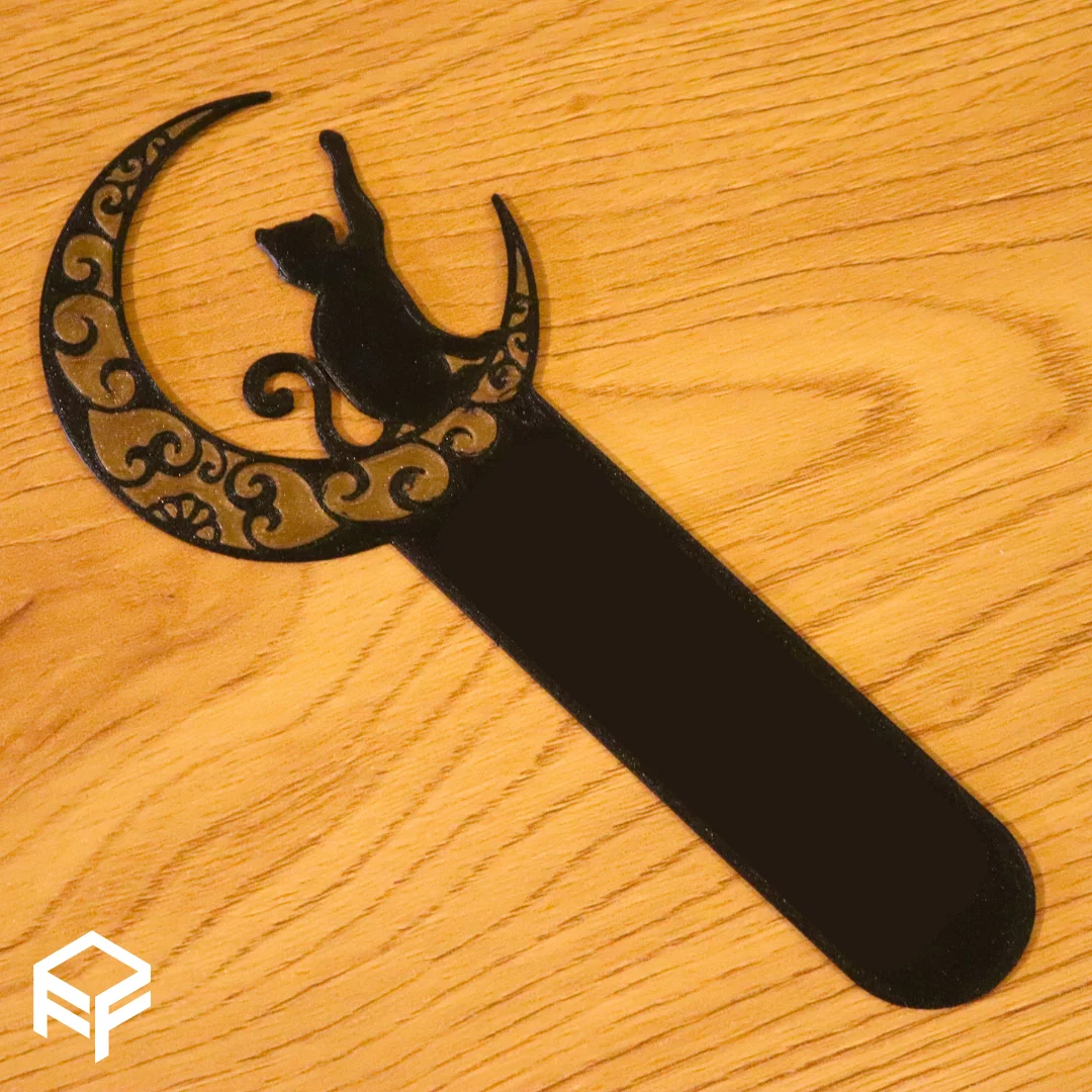 Phiên bản 2 của mẫu bookmark “Cat on the moon” nay có thể in multicolor. Bản mẫu mình phối gold và black, nhưng rất mong được thấy các cách phối màu khác từ cộng đồng. Chúc mọi người in đẹp!