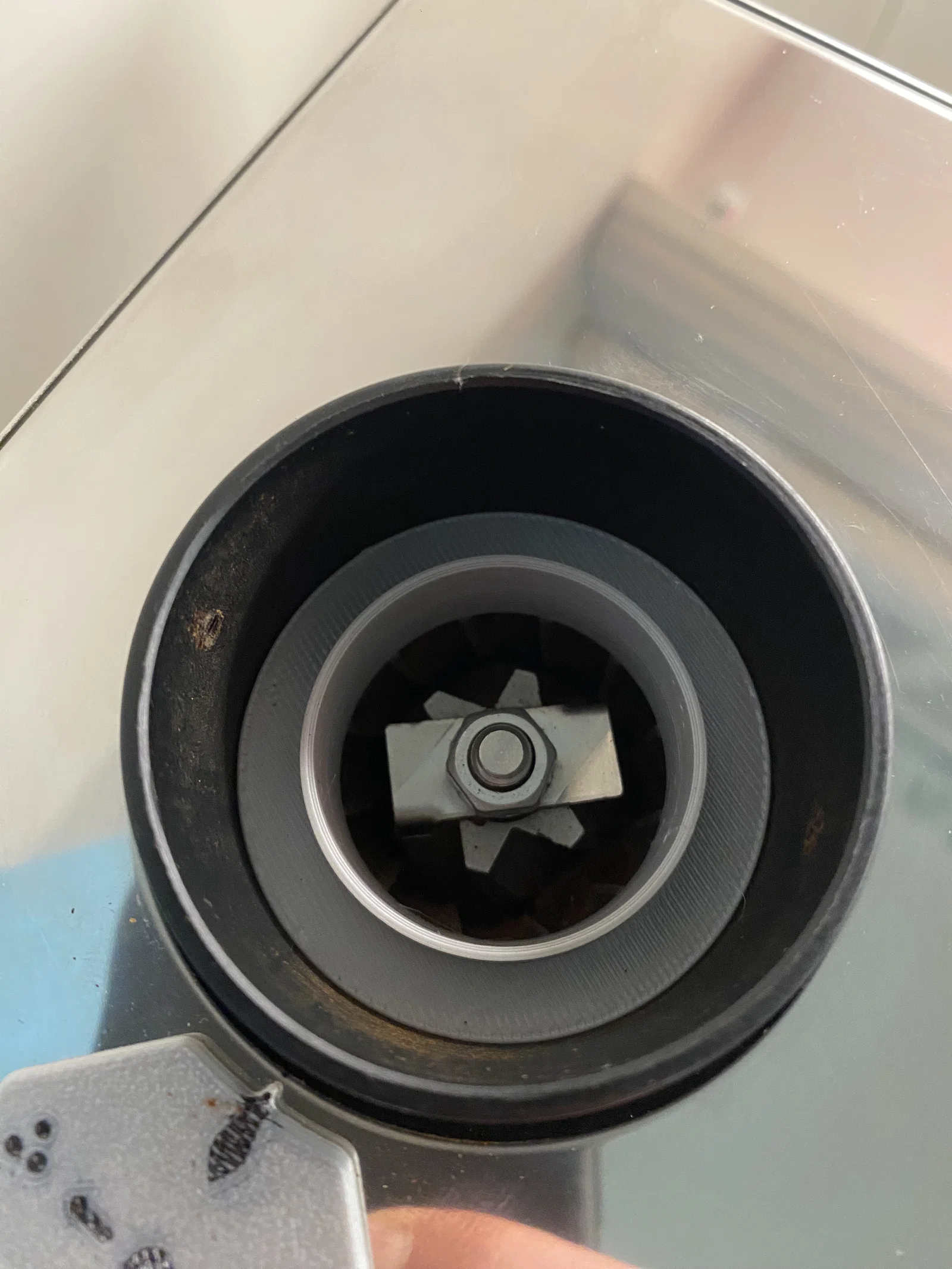 Model “Base” đã được chỉnh lại quanh công tắc nguồn và dây nguồn. Thiết kế này giữ nguyên các chân cao su dưới thân máy xay để tăng giảm rung. Base được cố định bằng 2 ốc M3 bắt xuyên từ đáy lên, đi qua các lỗ của cụm giữ cơ cấu timer bên trong máy (nếu mình nhớ đúng thì cụm giữ này ban đầu được tán rive, mình đã khoan bỏ). Sau đó mình dùng keo nến (hot glue) dán 2 trụ nylon (nylon standoffs) lên phần trên của giá đỡ, để có thể bắt vít từ dưới đáy base của máy xay lên. Cách này chỉ dùng được khi tháo miếng ốp hông-lưng! Cẩn thận cái lò xo trong cơ cấu chỉnh độ xay!!