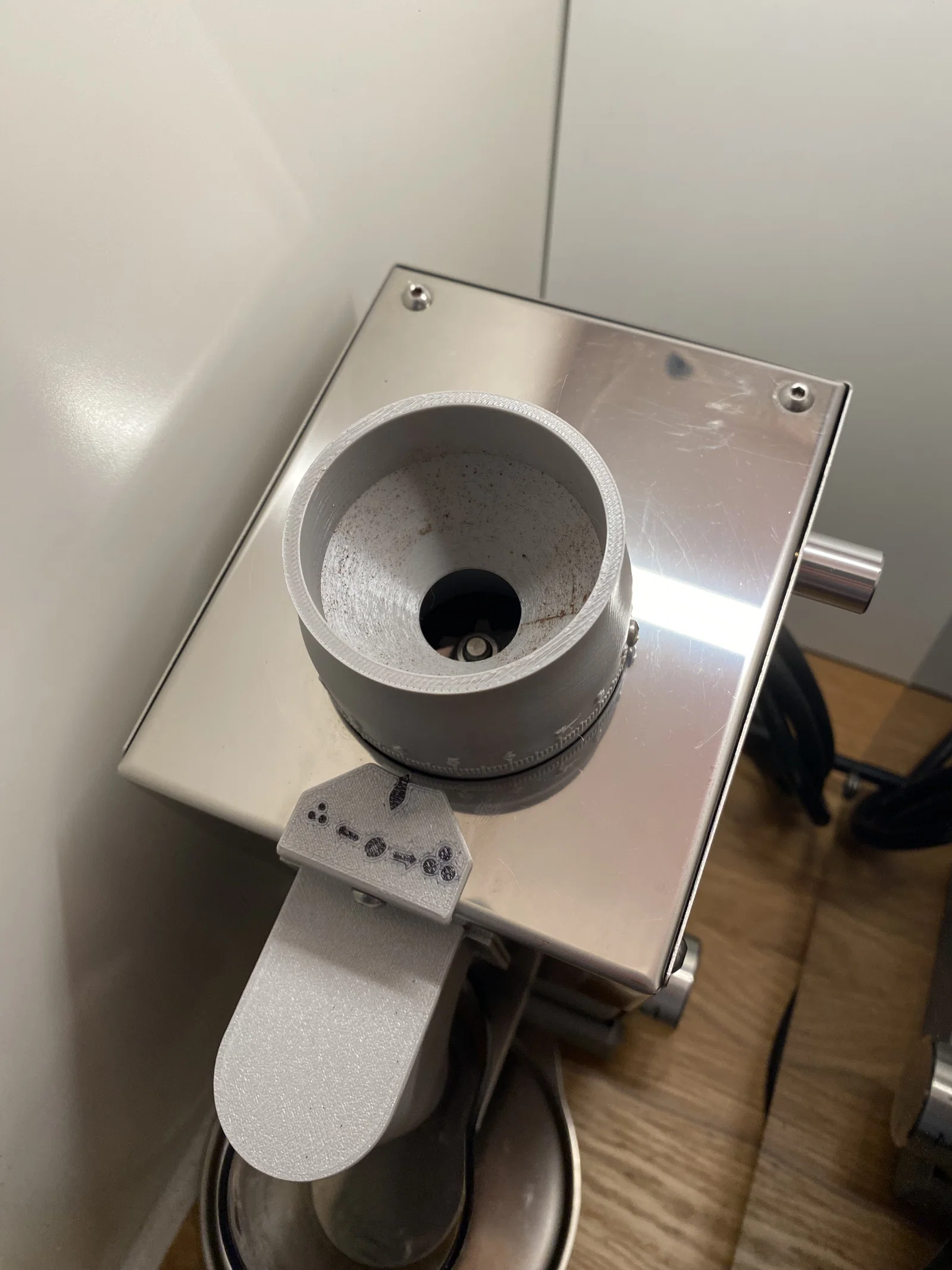 Lỗ trên ngàm gắn funnel ban đầu được thiết kế cho một đai ốc đóng M4 (drive-in nut) như https://www.rampa.com/eu/de/RAMPA-EINSCHLAGMUTTERN-TYP-TS/021408001010, nhưng mình có đính kèm một model, nên bạn có thể chỉnh cho phù hợp nhu cầu!