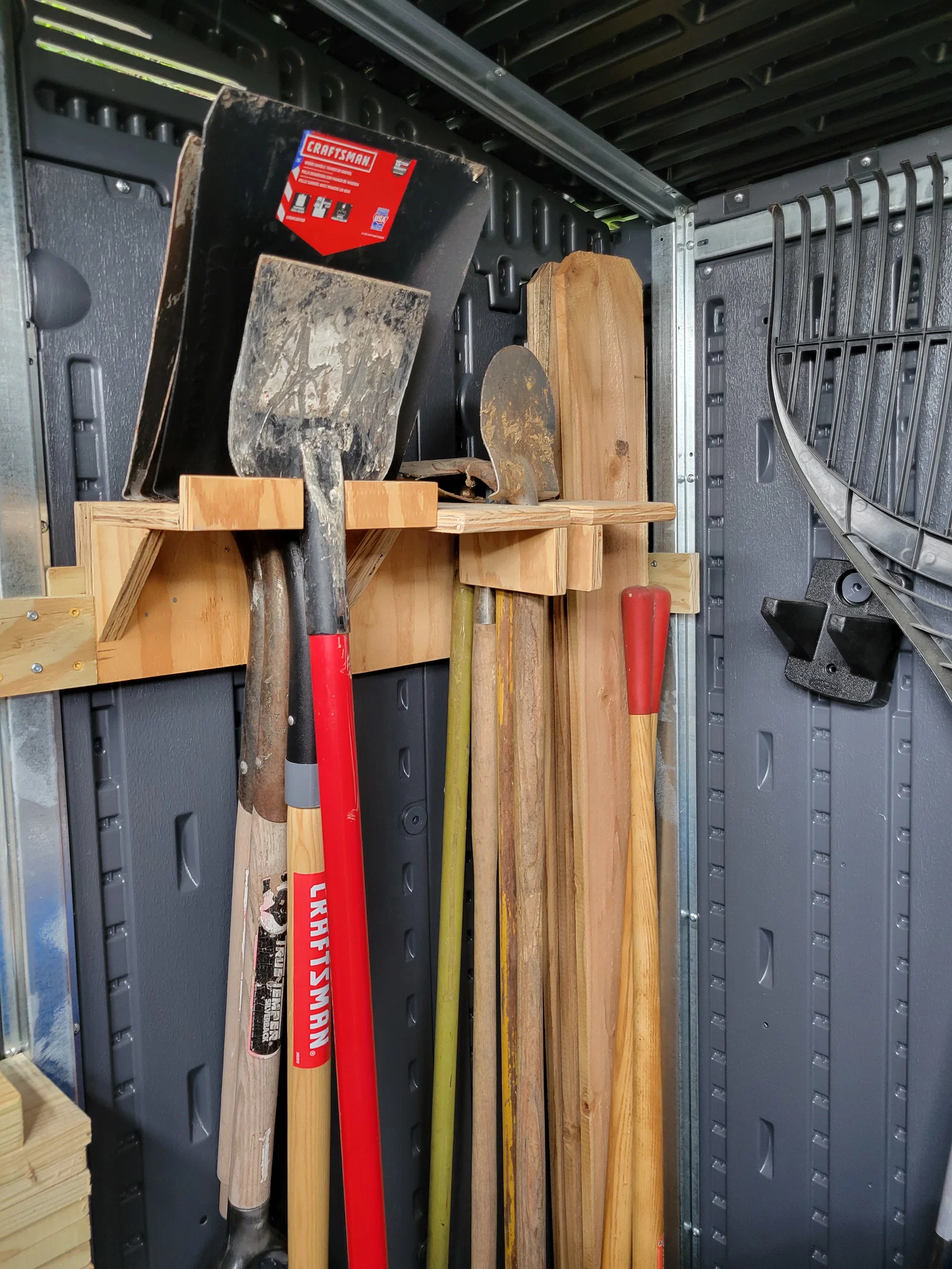 Mình có thêm một chút chiều dài và thêm một cái “nipple” để nó tự canh giữa khi siết chặt hết cỡ. Phần tăng chiều dài là để dùng nó gắn French Cleats bằng ván plywood ¾" lên tường, giúp cất dụng cụ gọn và tiện hơn. Mấy cái ngàm/holder đi kèm theo shed không được ngon, còn loại mua thêm thì giá bị đội lên quá nhiều. Mẫu này được thiết kế để khoét âm (countersunk) vào thanh cleat bằng mũi khoan Forstner 1-3/8". Các thanh cleat mình đang dùng cao 4".