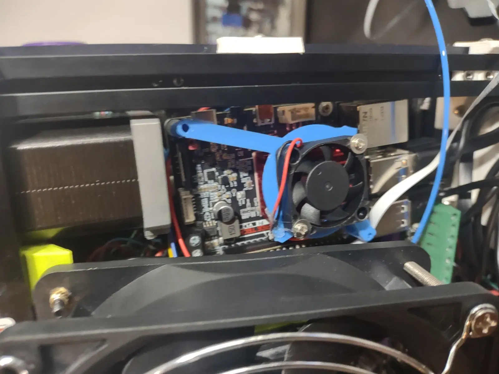 Có khoảng cách 2-3mm giữa đáy quạt và bất kỳ đầu nối nào bên dưới, vì vậy bạn có thể cắm thiết bị vào cổng quạt CNC. Tôi đã sử dụng một quạt 30mm x 30mm ngẫu nhiên mà tôi có sẵn.
