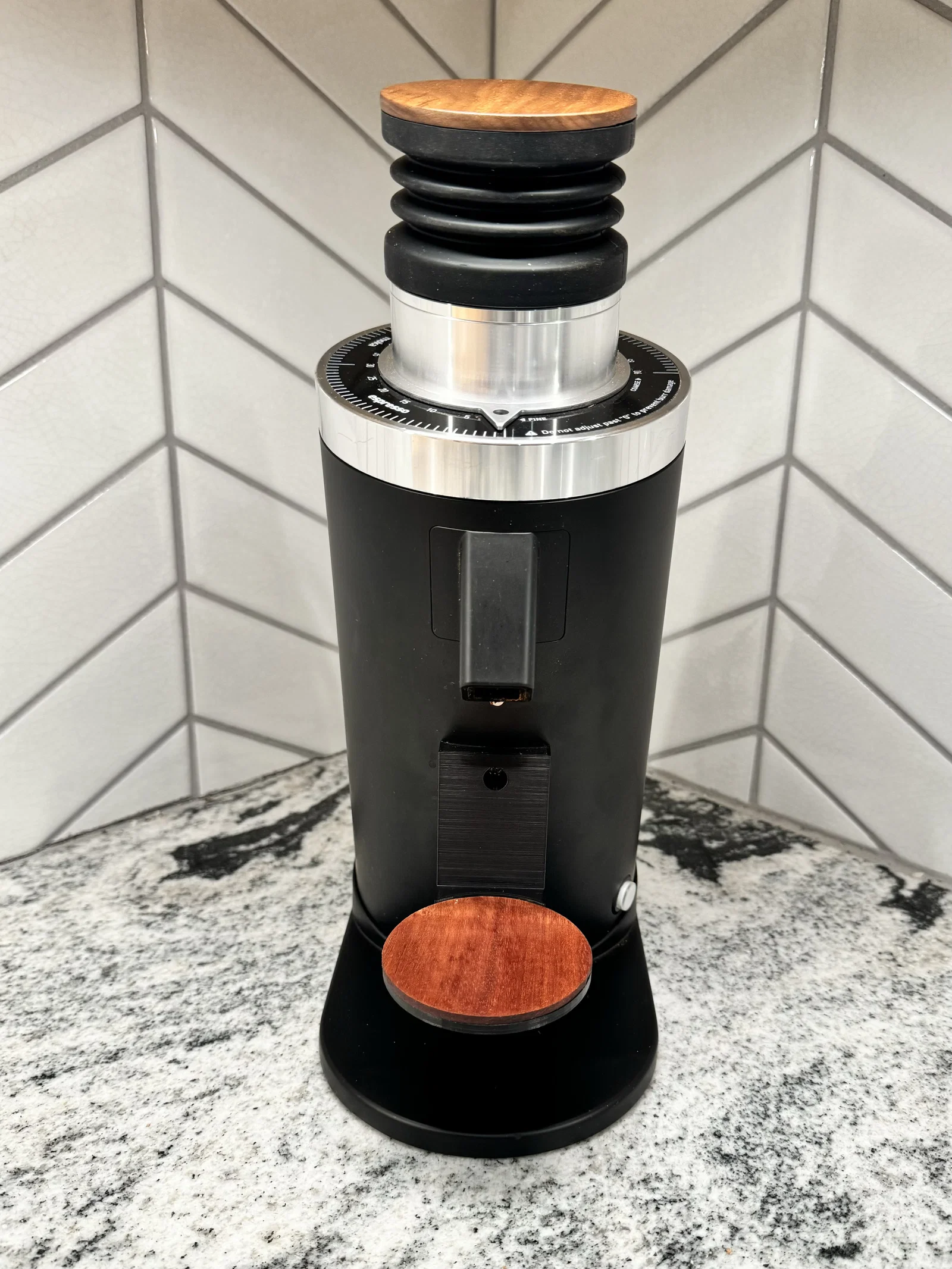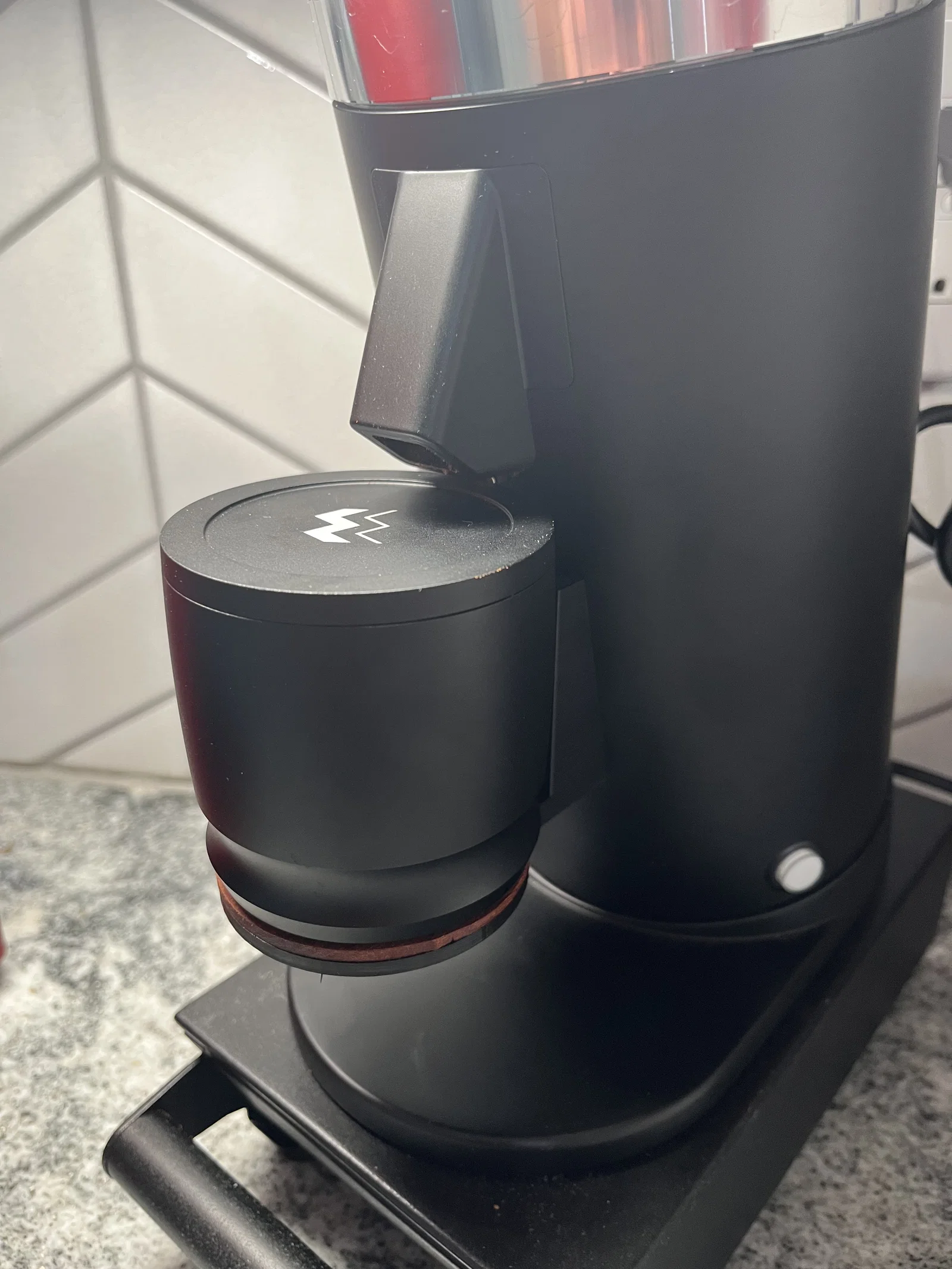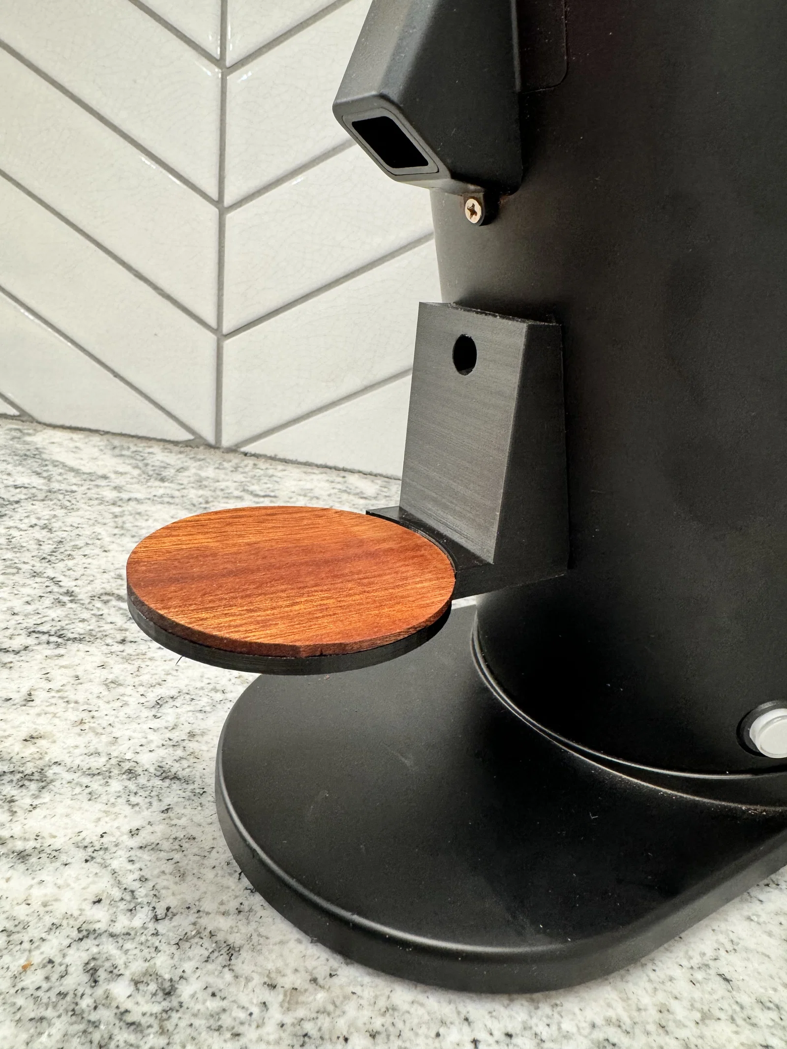 Mount gắn nam châm để giữ Weber Workshops blind shaker trên máy xay DF64 Gen 1 & 2. Có khe đặt nam châm giúp canh tâm shaker ngay dưới grounds chute; kèm cover disk in được (hoặc tự làm bằng gỗ).
