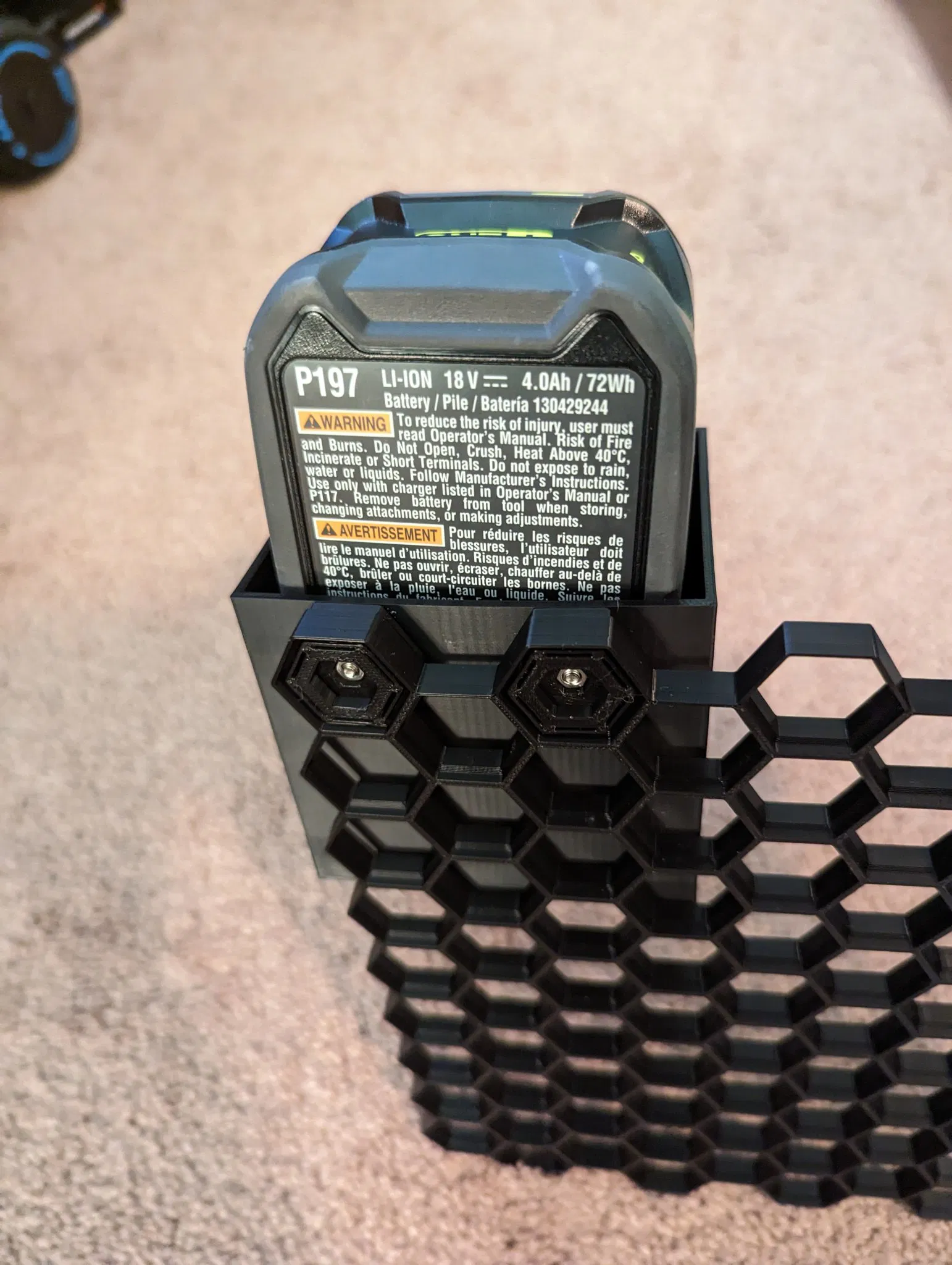 Tôi cần một giá đỡ pin ryobi cho tường công cụ mà tôi đang xây dựng với hệ thống Tường Lưu Trữ Tổ Ong. Tôi không thể tìm thấy một cái nào siêu đơn giản để in và cái mà tôi tìm thấy ban đầu và đã chỉnh sửa lại, không vừa với pin. Vì vậy, tôi đã thiết kế cái của riêng mình trong tinkercad. Có 2 kích thước, một cho pin 4ah và một cho pin 2 ah. Cái này sẽ in mà không cần hỗ trợ và bạn cũng cần in insert-with-M3.stl từ <https://www.f3d.vn/3d-model/151985-tuong-luu-tru-honeycomb Tôi đã in cái này bằng PLA+ và BambuLabs x1 carbon sử dụng cài đặt độ bền. Tôi để nó in vài lớp đầu tiên ở tốc độ bình thường và sau đó tôi đã chuyển sang tốc độ cực nhanh mà không gặp vấn đề gì. Bạn sẽ cần 2 vít m3 x 10mm và 2 bu lông m3 cho cái này. Tôi đang nghĩ đến việc chỉnh sửa lại nó để có thể in mà không cần phần cứng, nhưng tôi muốn một bản in dễ dàng mà không cần hỗ trợ. Bạn có thể cần thay đổi hướng của mô hình.