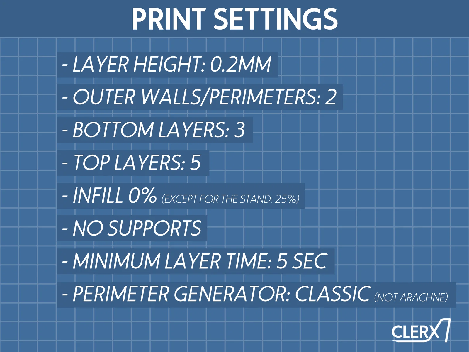 - Minimum layer time: 5 sec