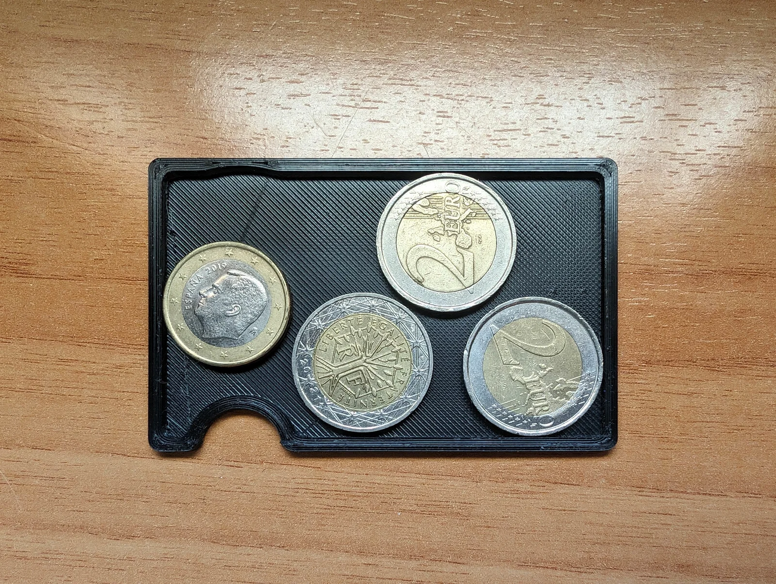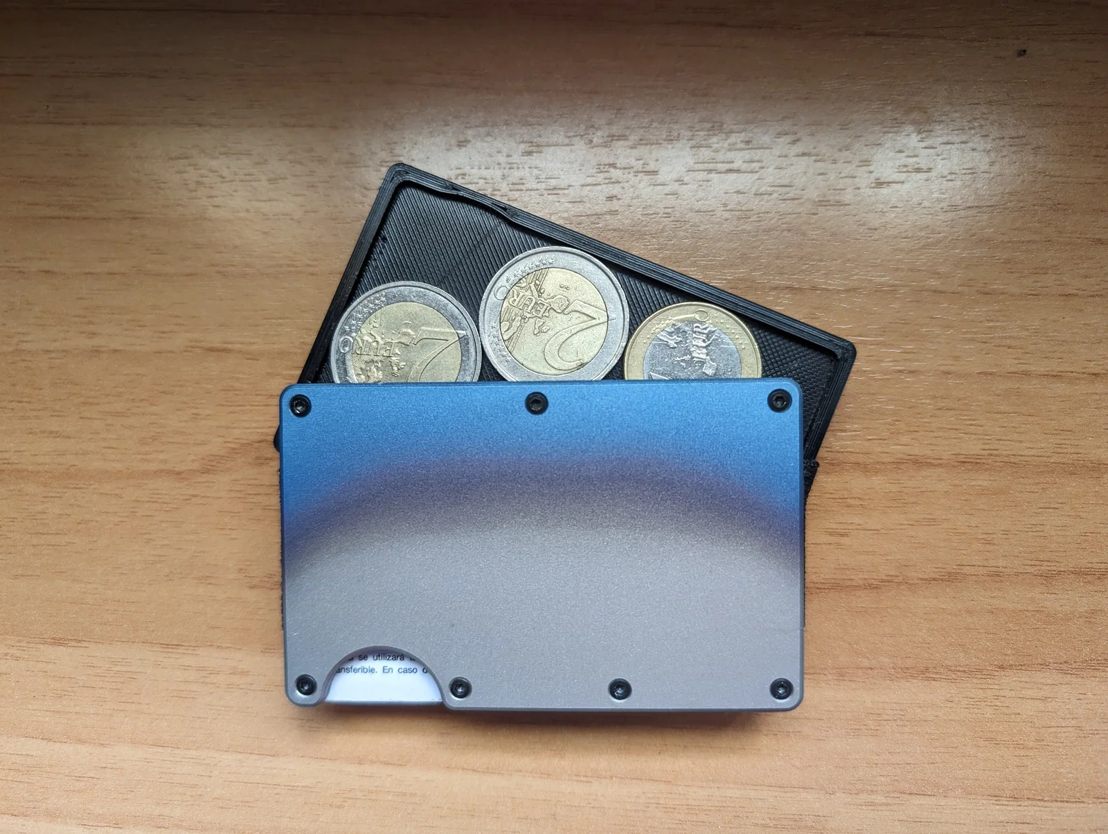 Khay dạng thẻ cho ví Ridge, tương thích tất cả đồng EUR. Thiết kế chừa chỗ cho ngón tay để lấy thẻ linh hoạt, vẫn dễ tiếp cận thẻ trước/sau. Nhỏ hơn khe mở 2mm; kích thước 85.30×53.70×2.6mm.