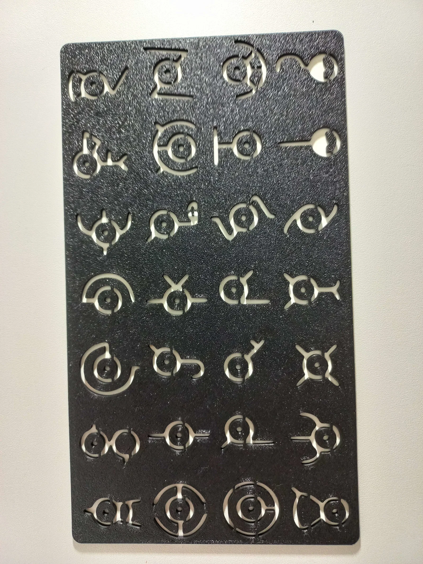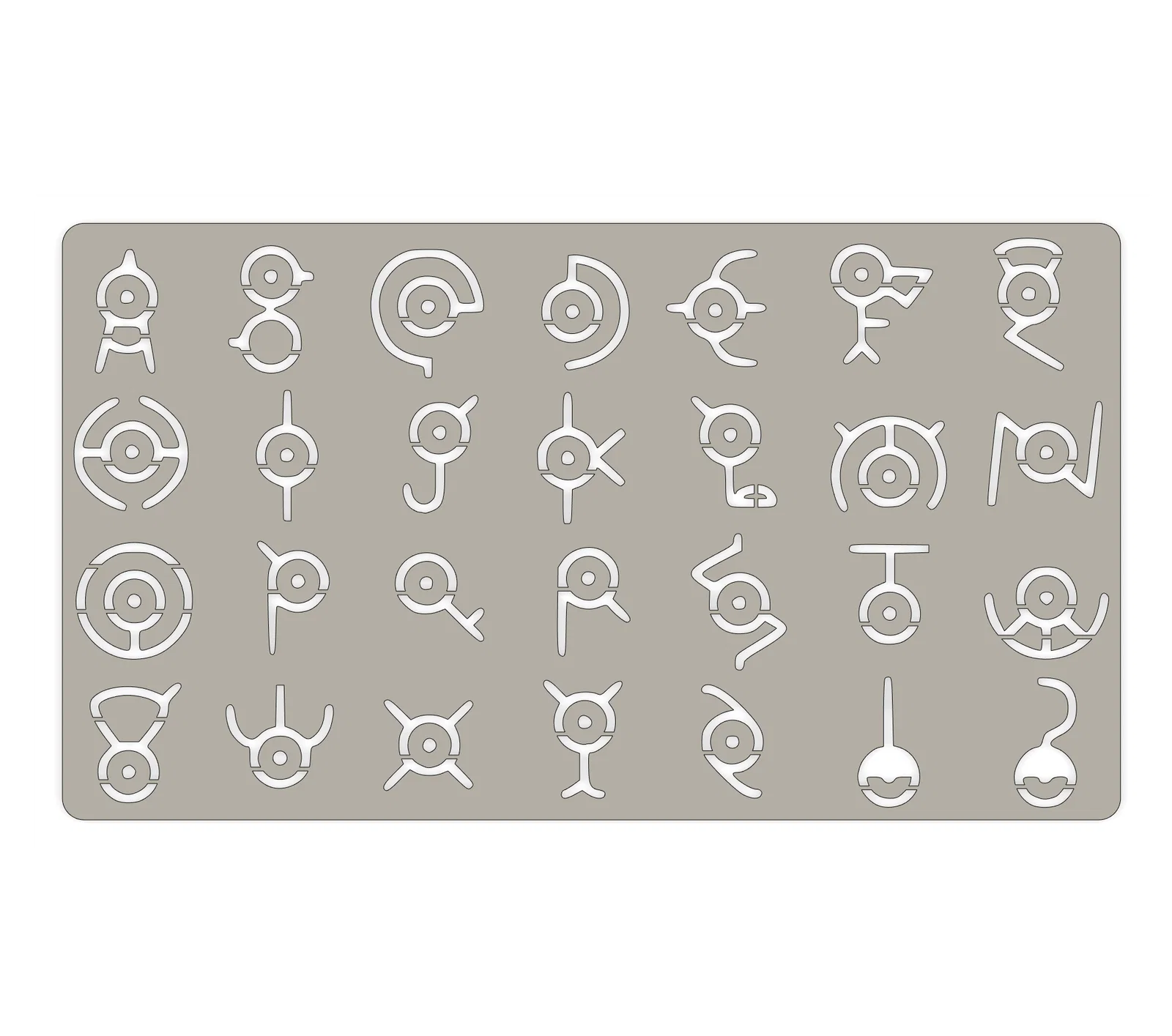 Template vẽ bảng chữ cái Pokémon dựa trên các dạng Unown. Có bridges nhỏ để giữ các phần dễ “lơ lửng”; không tháo ra mà vẽ vòng quanh và dưới bridges. Khuyến nghị in với mặt bridges quay xuống.