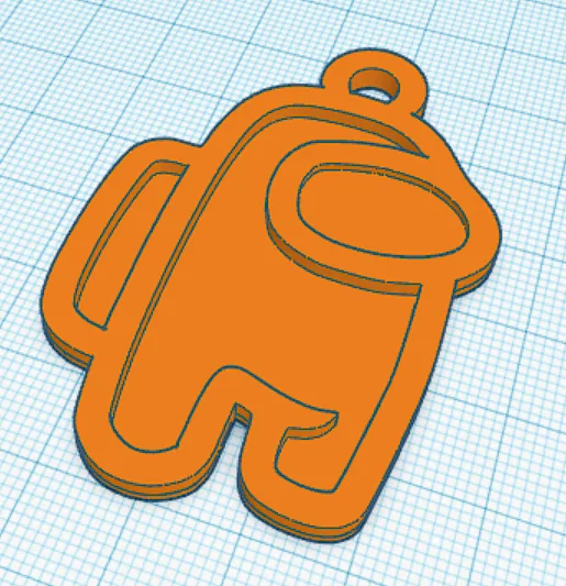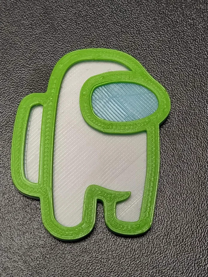 Móc khóa hình nhân vật Among Us. Bản in trong ảnh không có lỗ/móc gắn keychain, nhưng file STL có sẵn chốt gắn. Thiết kế 3 layer (mỗi layer 1 mm) để đổi filament theo layer và in được nhiều màu.