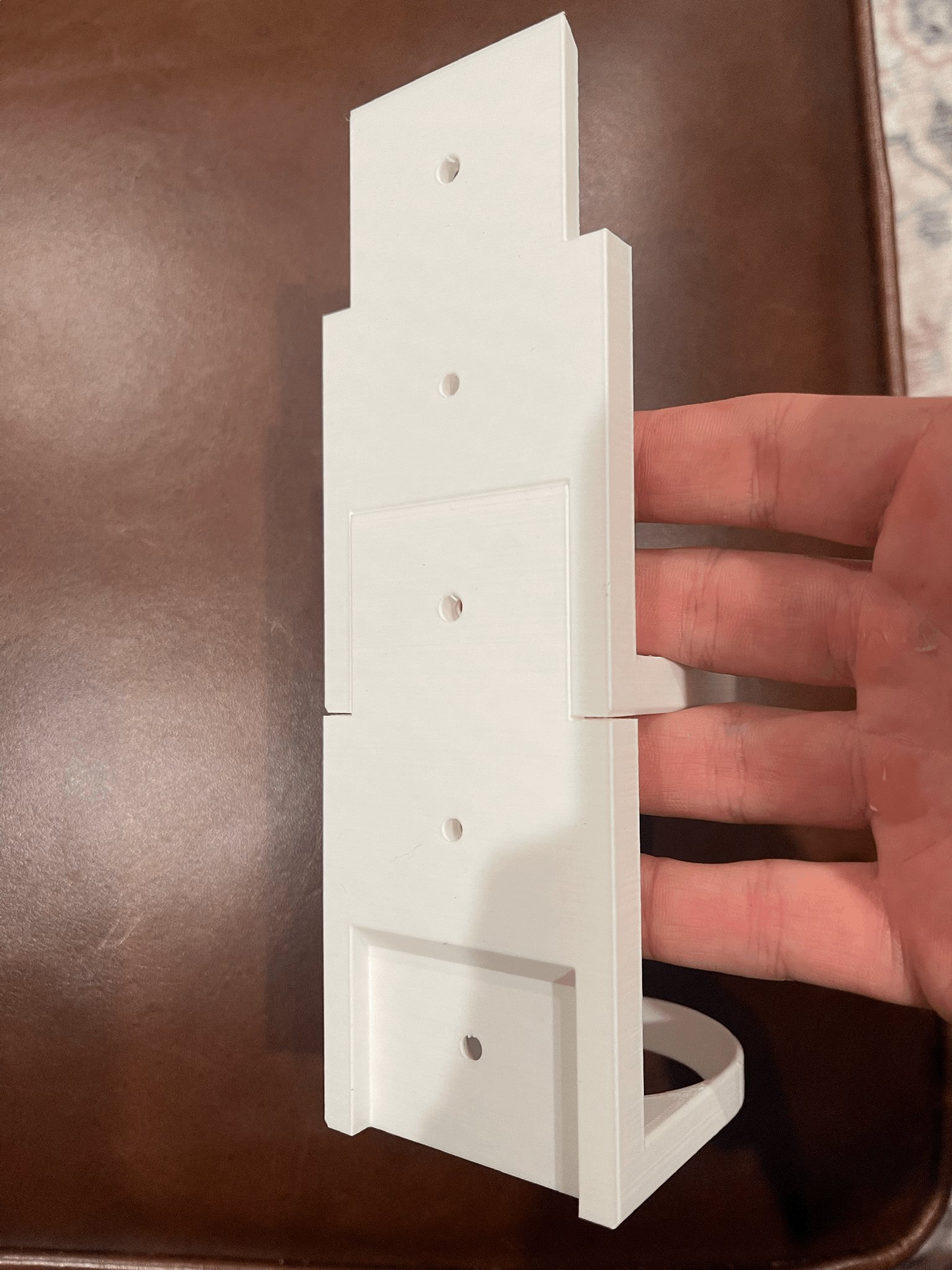 Mỗi phần mở rộng liên kết với phần phía trên nó khá chặt chẽ với các lỗ vít chồng lên nhau để chúng khóa lại với nhau trên tường. Sau đó, bạn có thể in nắp trên cùng nếu bạn không muốn nhìn thấy tab mở rộng.