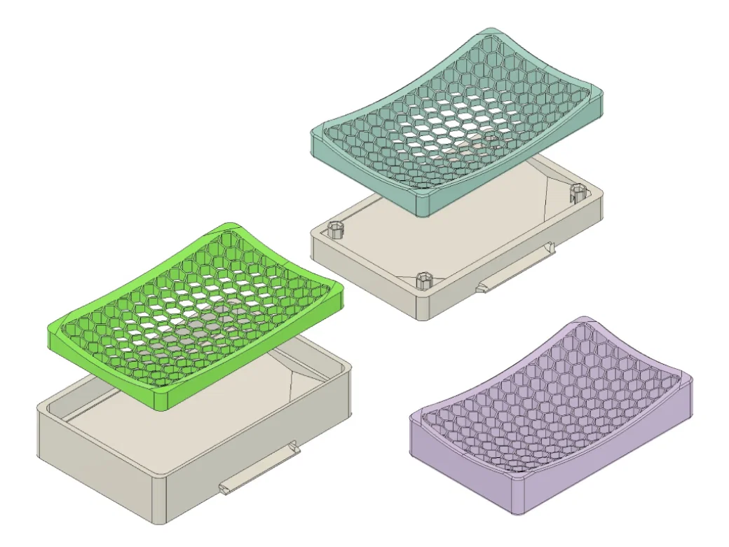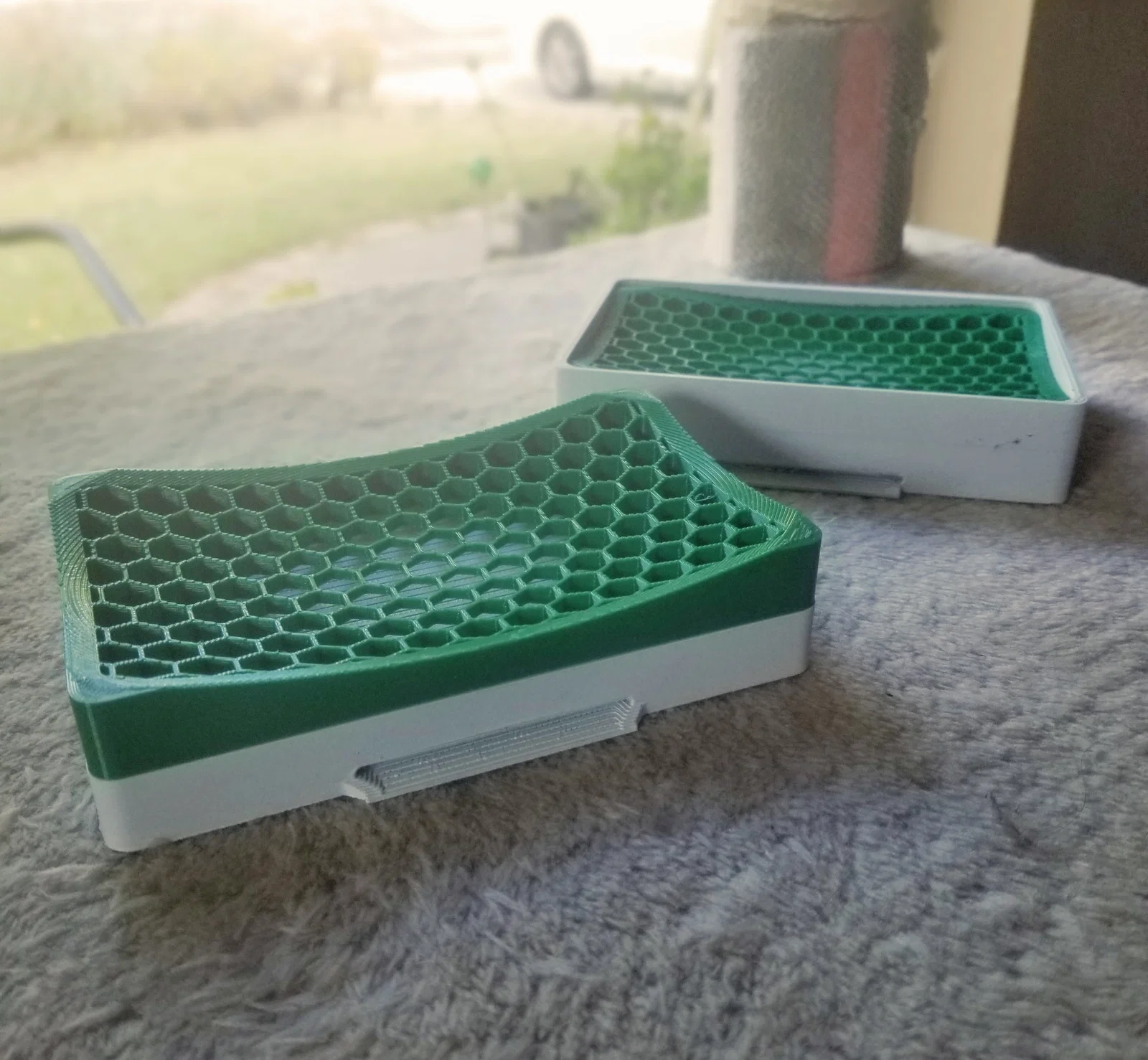 Mình có 3 phiên bản khay để bạn lựa theo nhu cầu: một mẫu đơn giản mà hiệu quả (soap1.stl), và hai mẫu còn lại có kèm đế với thoát nước tích hợp để đặt cạnh bồn rửa hoặc bồn tắm.