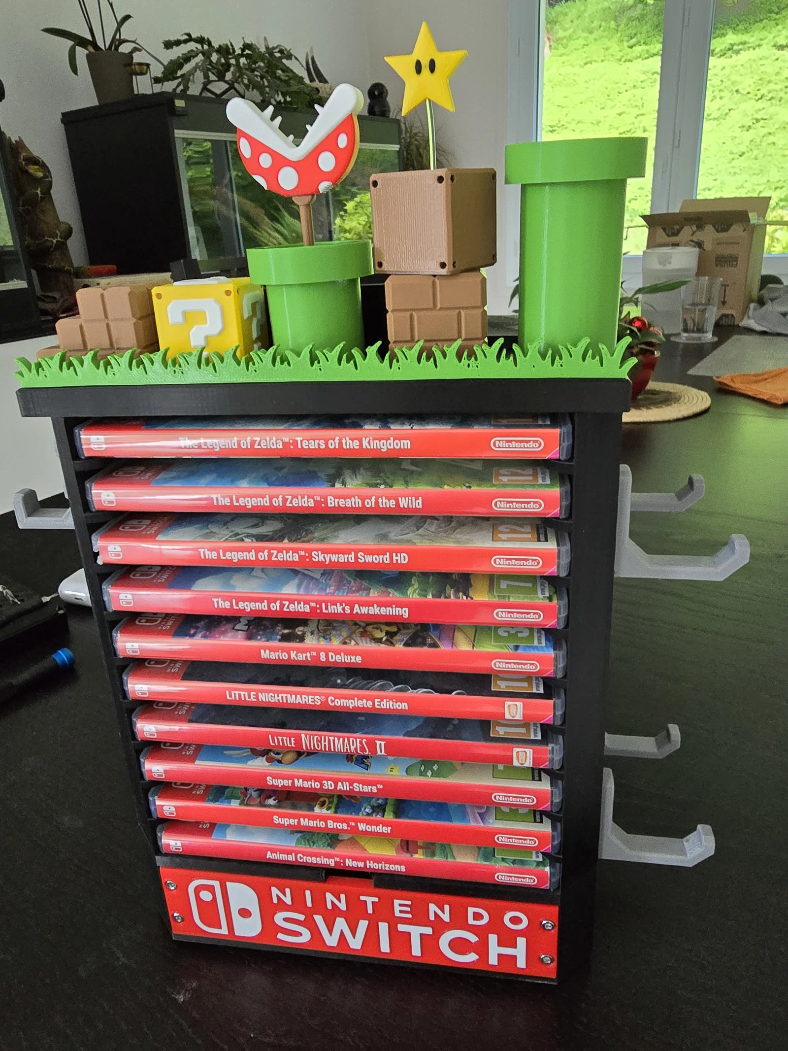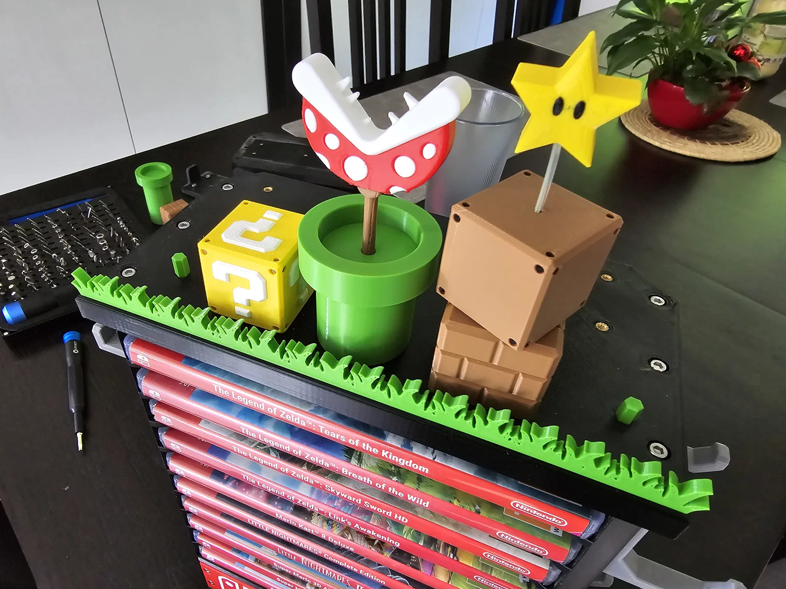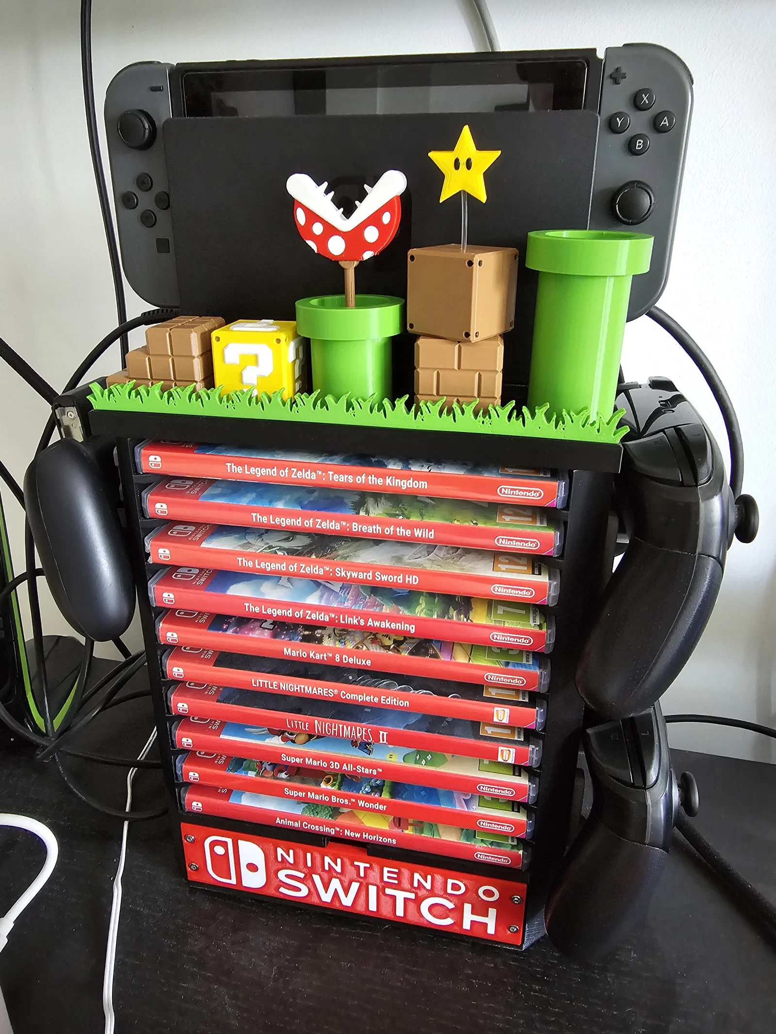 Biến góc chơi game của bạn trở nên ấn tượng hơn với tháp trưng bày Nintendo Switch phong cách Super Mario. Đây là mẫu thiết kế 3D hoàn hảo giúp bạn vừa sắp xếp băng đĩa game gọn gàng, vừa trang trí bàn làm việc bằng các biểu tượng huyền thoại như cây ăn thịt Piranha, ống cống và ngôi sao trong thế giới Mario. Sản phẩm không chỉ có tính thẩm mỹ cao mà còn rất chắc chắn, hỗ trợ tốt cho việc lưu trữ và trưng bày. Bạn có thể dễ dàng in từng phần bằng nhựa PLA với màu sắc rực rỡ để tạo nên một bộ sưu tập độc bản cho riêng mình. Đây là món phụ kiện không thể thiếu dành cho các game thủ yêu thích sự tinh tế và cá tính.