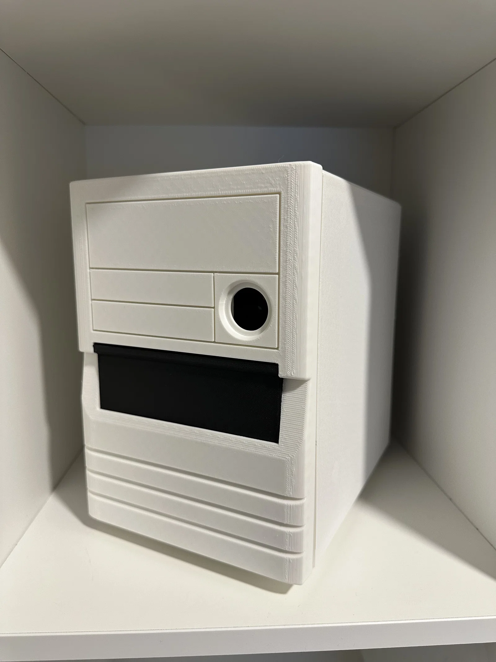 Khuyến nghị in úp mặt xuống trên textured build plate để đạt đúng “chất” retro nhất. Phần Drive Bays có thể cố định bằng nam châm 8x3 hoặc dán keo.