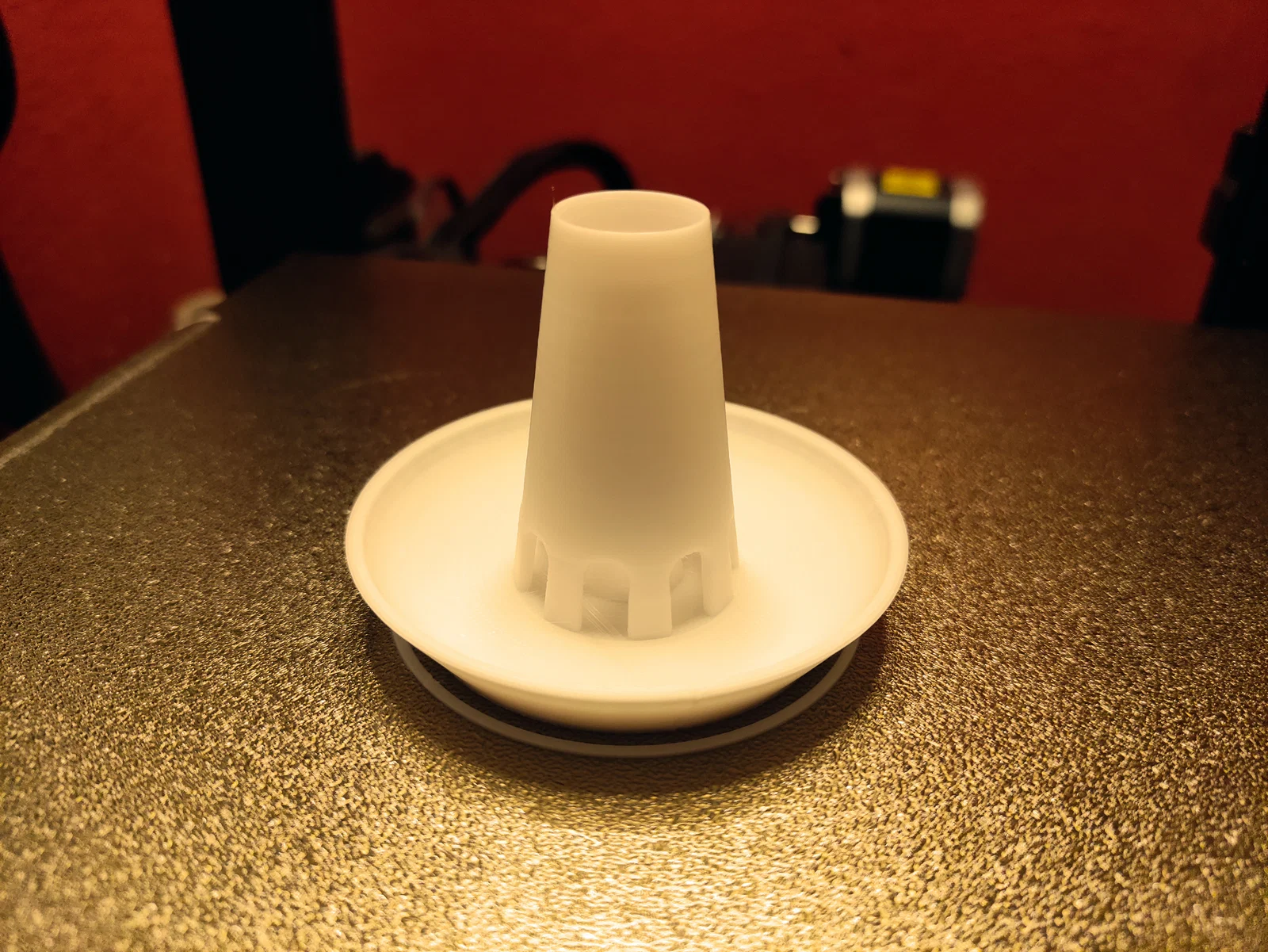 ENG: giúp tránh làm bật tung cây, nền (substrate), đồ trang trí… khi xả nước vào hồ. Ở scale gốc thì sẽ vừa ống có đường kính NGOÀI 15mm (~0.6 inch). Để tìm đúng hệ số scale, mình có thêm một model test. Bạn scale lên/xuống tới khi nó ôm sát ống, rồi in model đầy đủ với cùng hệ số scale và infill 100%.
