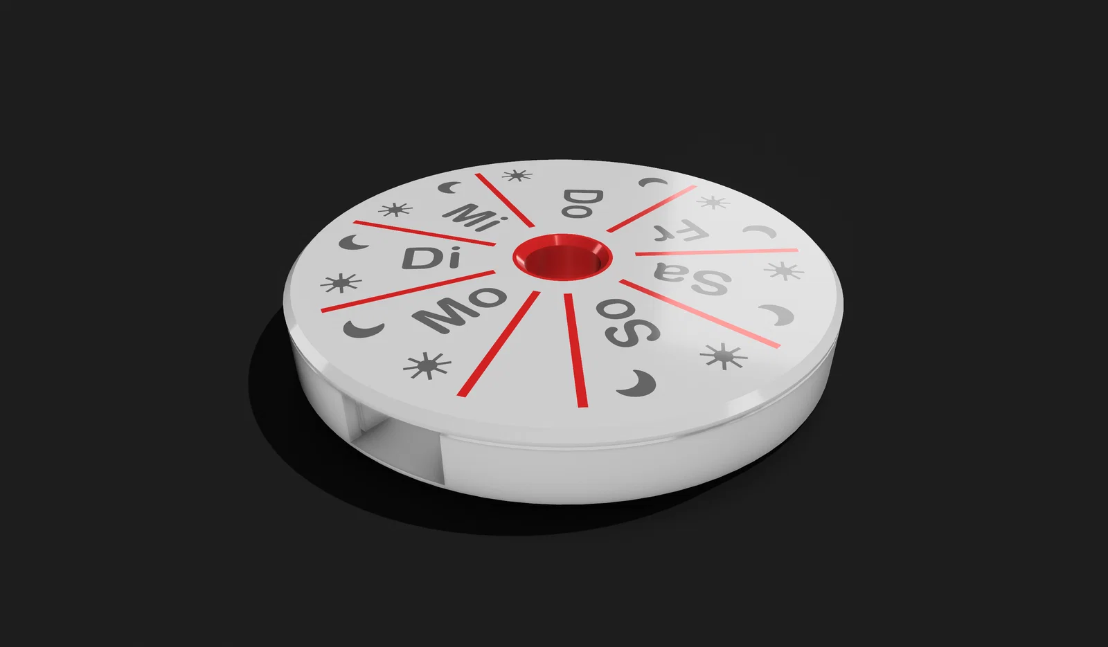 Hộp chia thuốc theo tuần nhỏ gọn để cất và lấy viên thuốc dễ dàng, cho cảm giác “click” đã tay. Thiết kế tối ưu cho in 3D (khuyến nghị layer height 0.2mm), không cần support; có thể tùy chọn chữ hiển thị.