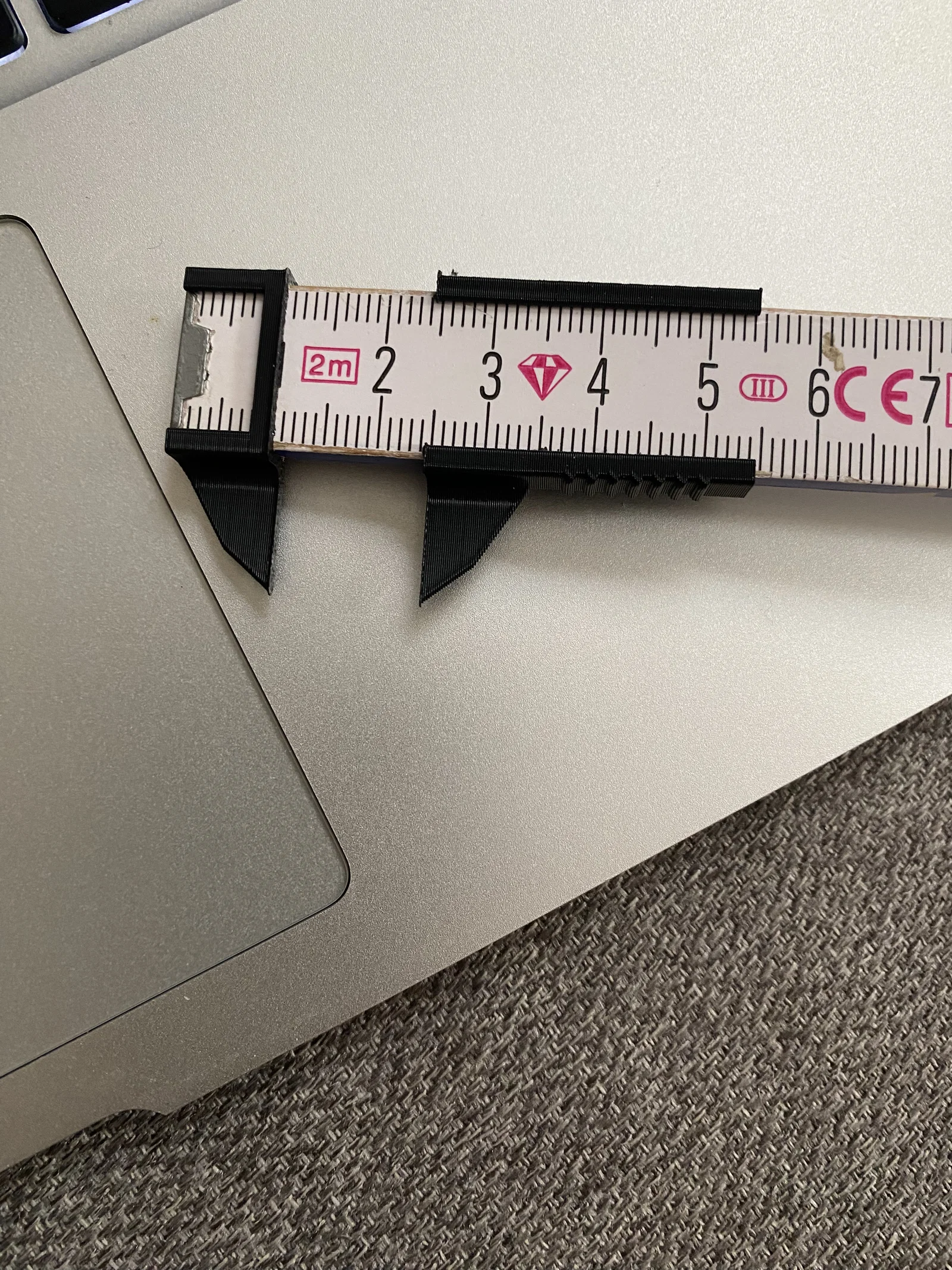 Kẹp đo (Messzange) cho thước gấp (Zollstock). Nên in món này theo chiều dựng đứng (in đứng) để không cần supports. Tổng cộng chỉ cần khoảng 2g filament và in xong trong vài phút.