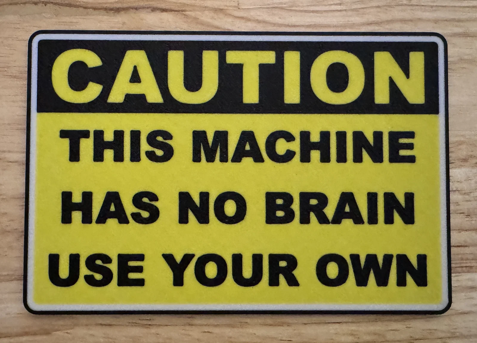 Mình thấy cái này dưới dạng sticker dán trên một cái máy, nên làm luôn một cái bảng. Theo mình, kiểu bảng này nên bắt buộc có trên mọi loại máy móc, phương tiện, v.v... Mình có đính kèm file .3mf và file STEP để việc tô màu/đổi màu cho bảng dễ dàng hơn rất nhiều. Mình cũng kèm STL, nhưng không chắc nó hữu ích lắm cho ai muốn in multicolor.