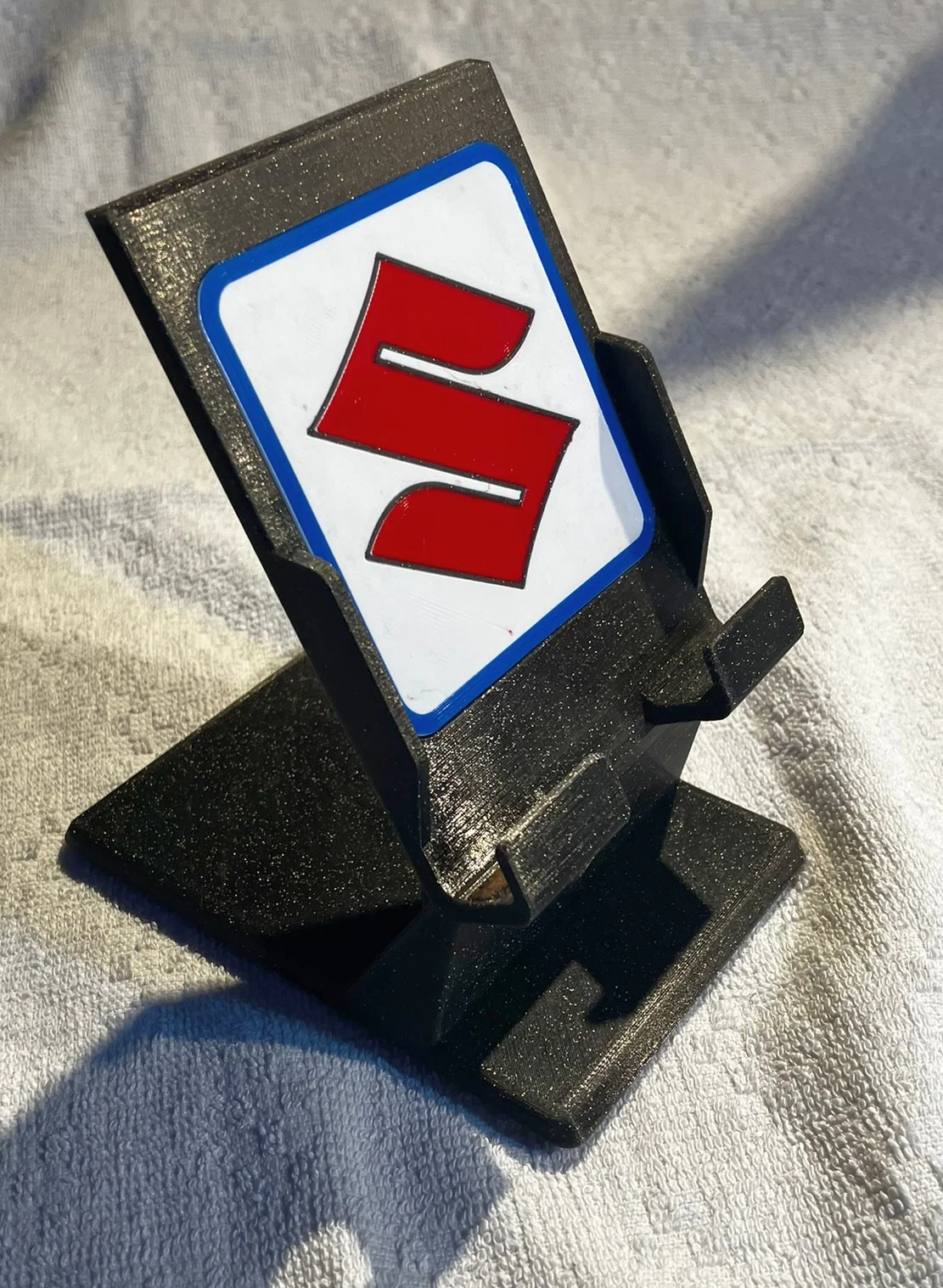 Giá đỡ điện thoại dạng một mảnh, in không cần supports. Có các lỗ và khe khoét để luồn cáp sạc. Mình có kèm file STEP để bạn chỉnh sửa và thêm chữ, logo, họa tiết…