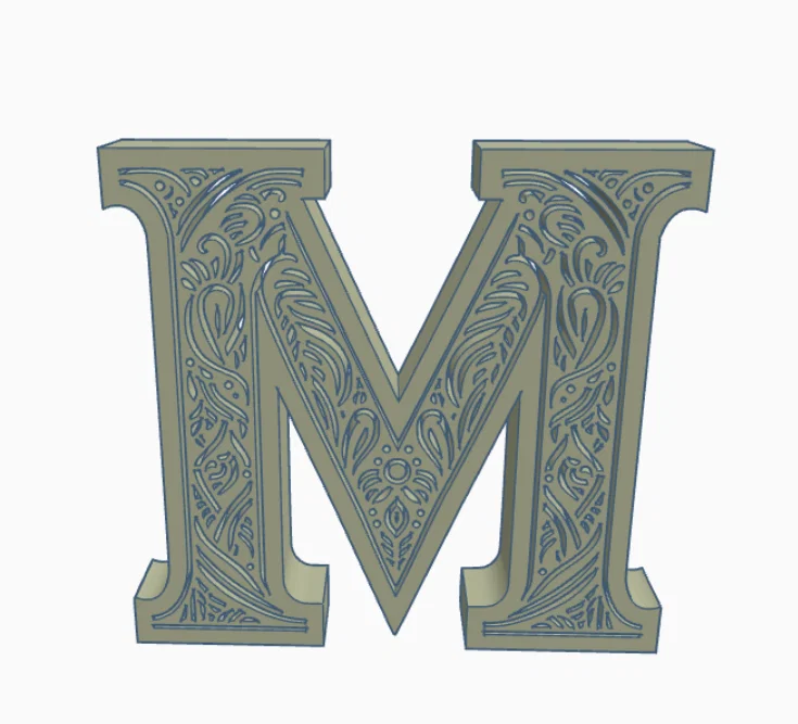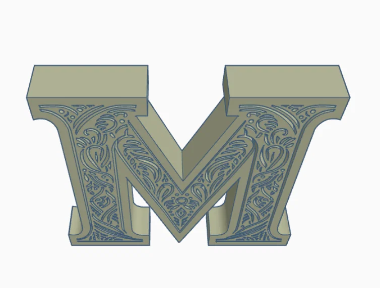 Mang đến vẻ đẹp tinh tế cho không gian sống của bạn với mô hình chữ cái M trang trí đầy nghệ thuật. Sản phẩm được thiết kế với những họa tiết chạm khắc tỉ mỉ, kết hợp cùng kết cấu đứng vững chãi, rất phù hợp để làm đồ decor trên bàn làm việc, kệ sách hoặc làm quà tặng cá nhân độc đáo. Bạn có thể dễ dàng điều chỉnh kích thước tùy ý bằng phần mềm 3D để phù hợp nhất với vị trí bài trí trong nhà. Đây là một mẫu in 3D khá đơn giản nhưng vô cùng ấn tượng, thích hợp cho cả người mới bắt đầu hoặc người dùng dày dạn kinh nghiệm. Hãy sử dụng chất liệu nhựa PLA với thiết lập layer height phù hợp để đạt được độ chi tiết sắc nét nhất cho các hoa văn trên sản phẩm.