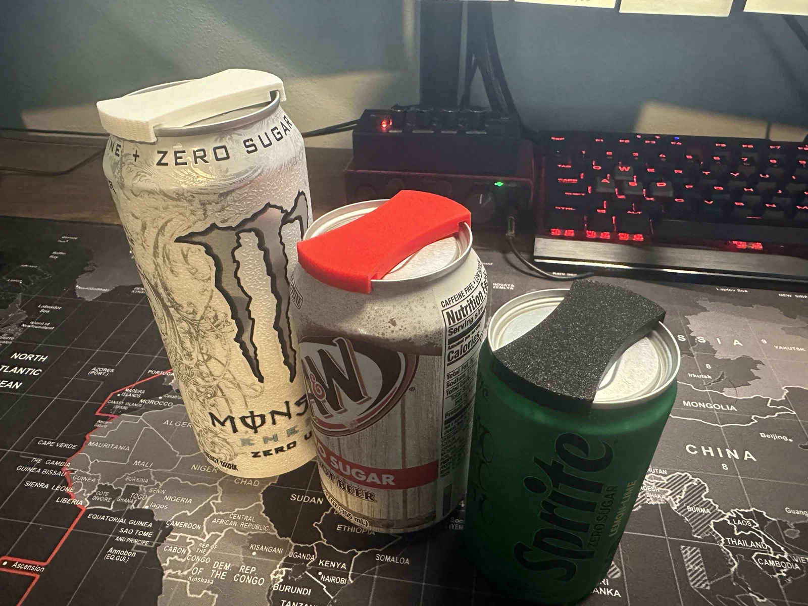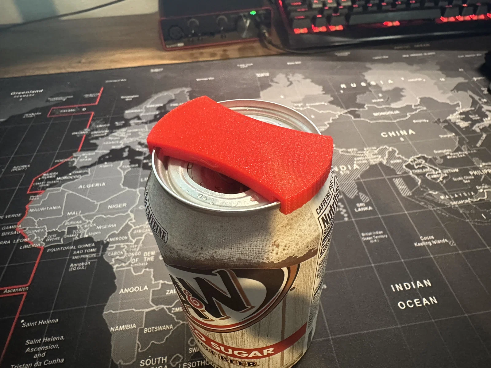 Đây là phiên bản cũ của nắp đậy cho lon nước ngọt tiêu chuẩn, giúp ngăn côn trùng rơi/bay vào đồ uống. Nắp có thể xoay để mở phần miệng uống hoặc tháo bật ra. Khuyến nghị in PLA+ với setting tiêu chuẩn.