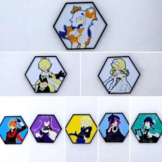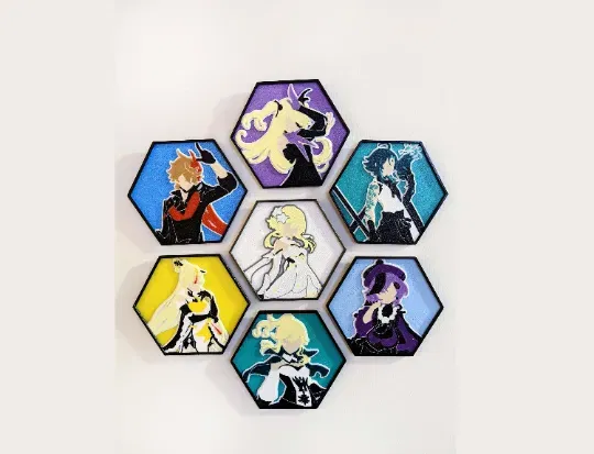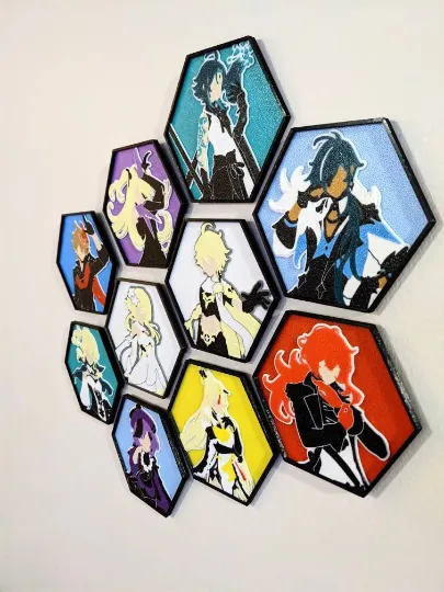 Thiết kế nghệ thuật tường hình lục giác với một số nhân vật Genshin Impact yêu thích của tôi.