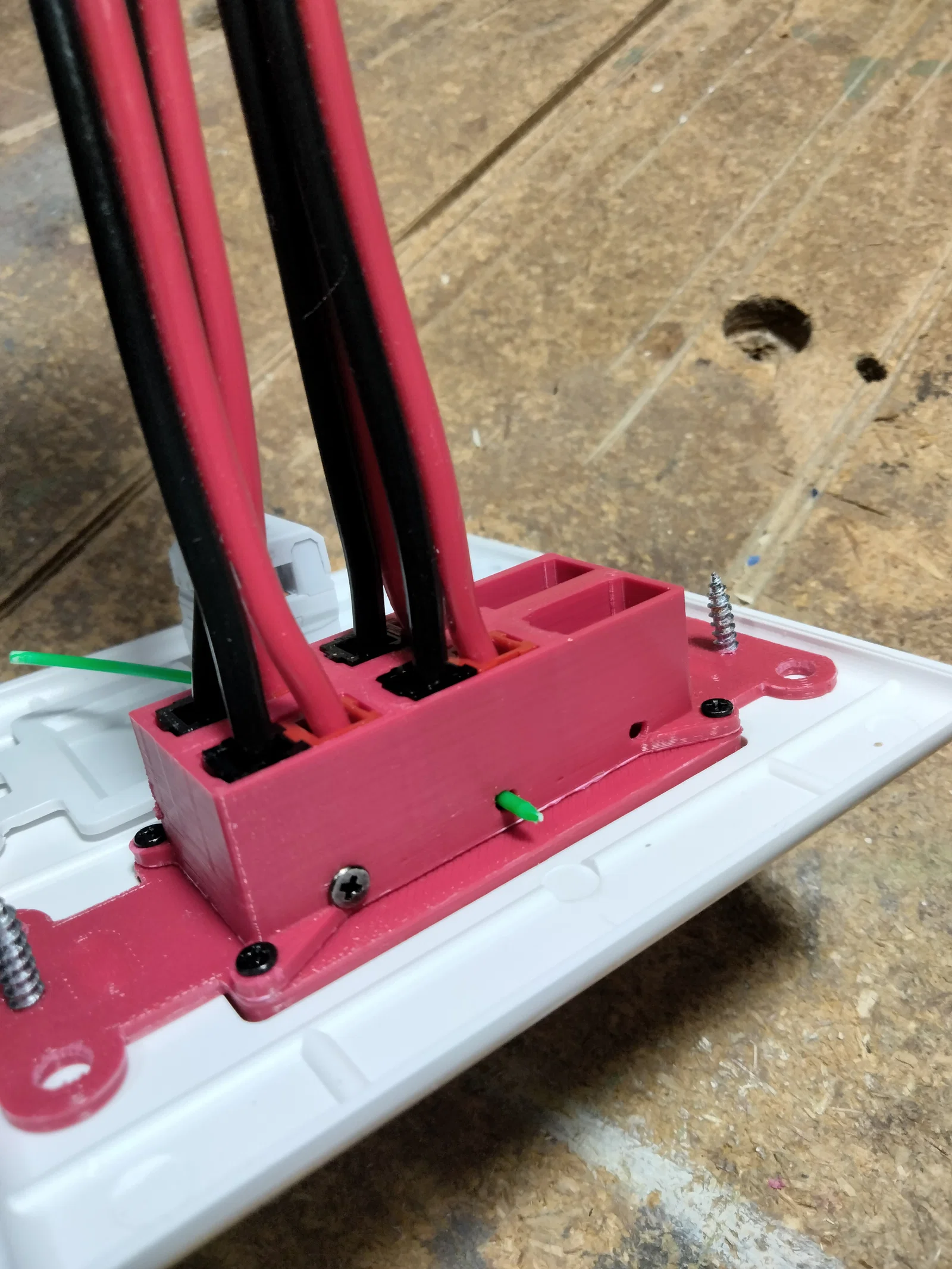 Tấm mặt (face plate) được thiết kế nhô ra nhẹ so với cover, đây là tiêu chuẩn của ổ cắm kiểu “Decorator”. Hãy in face plate bằng màu bạn muốn để đồng màu với cover của bạn. Phần lưng (back) có thể in màu nào cũng được vì không nhìn thấy.