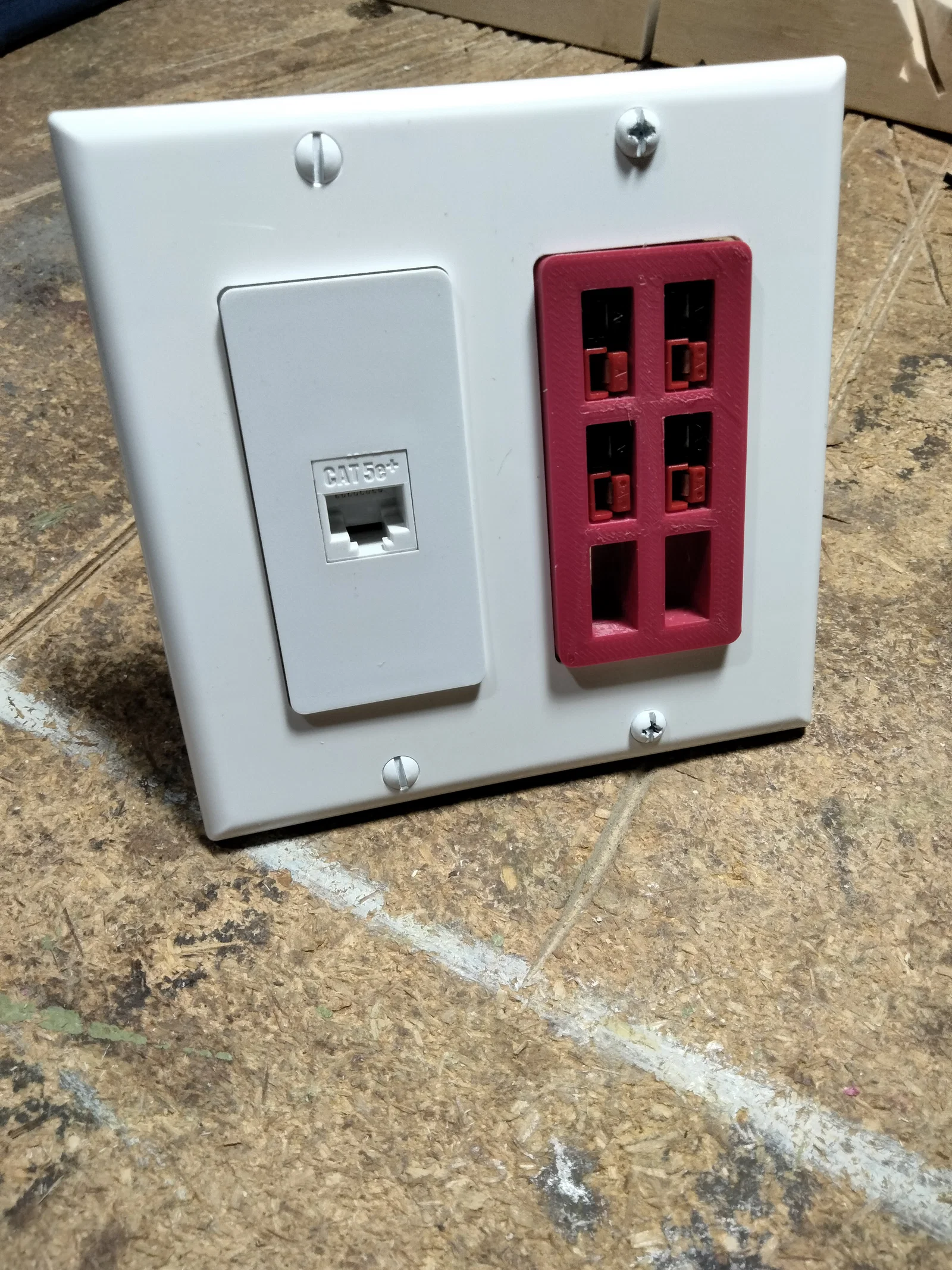 Lúc đầu mình thử làm một "Keystone Jack" cho Anderson Powerpole nhưng nhận ra nó gần bằng đúng kích thước "Keystone Jack", khiến thành phẩm quá mỏng manh (fragile) nên không thực tế. Thiết kế tiếp theo là dùng loại mặt che gọi là "Designer" face plate. Cách này cho thêm không gian để gắn nhiều loại jack khác nhau mà không bị giới hạn bởi kích thước của "Keystone Jack".