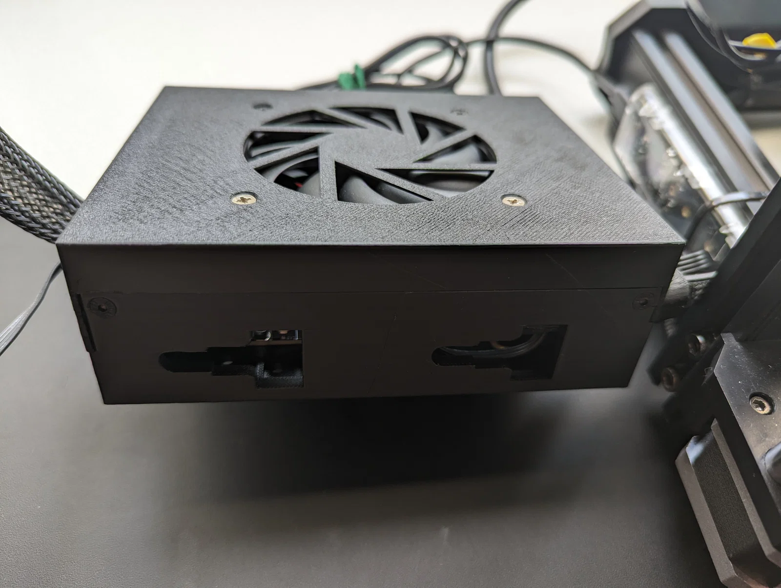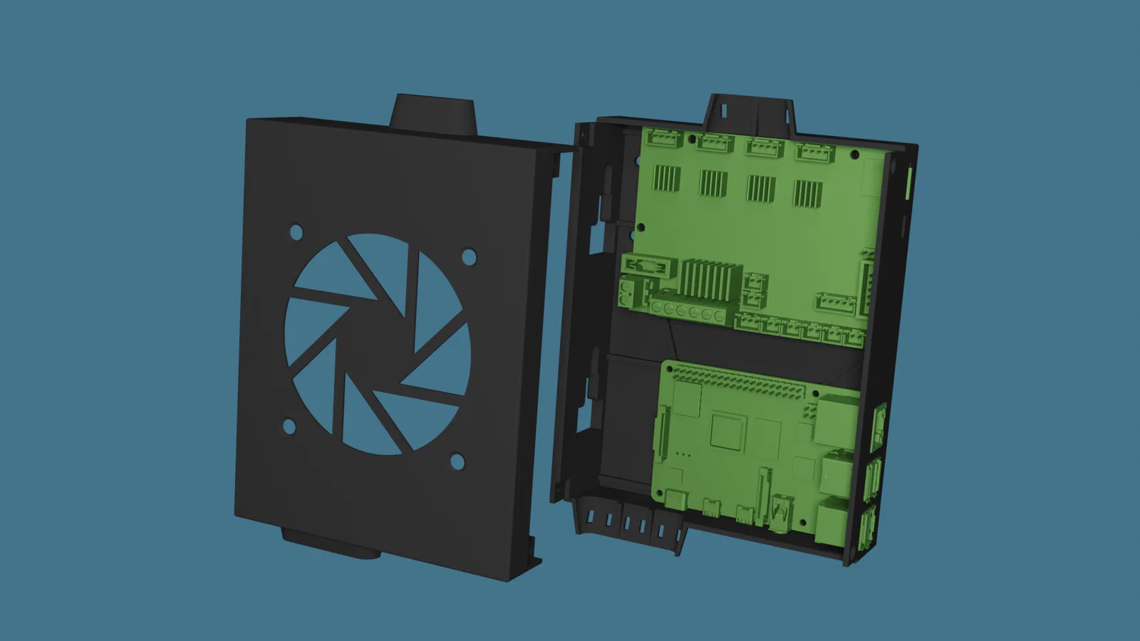 Edit: Version 2 đã sửa một vài vấn đề liên quan tới threaded inserts, tăng khe hở quanh các cổng I/O, chỉnh lại kích thước lỗ vít quạt, và với RPi4B thì thêm gia cường kết cấu ở một góc vốn dễ bị gãy ở V1.