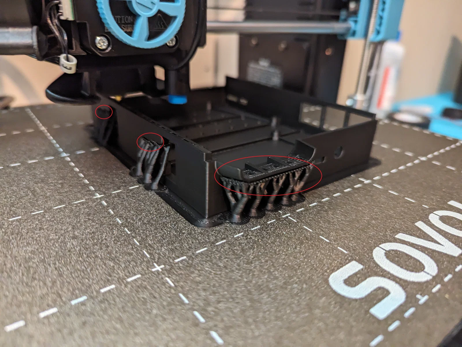 Mình in bằng PLA, nozzle .4 và layer height .2, chỉ cần support ở cửa đi dây trên/dưới, cũng như 2 bậc đầu tiên của các lỗ trong cơ chế khóa. Xem ảnh cuối để rõ hơn phần này.