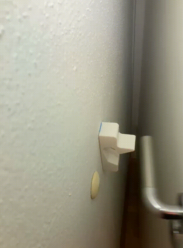 Mẫu door handle catch giúp giữ cửa cố định: phần móc có độ dốc sẽ tự đẩy tay nắm xuống và giữ nguyên cho tới khi bạn ấn xuống bằng tay. Có thể dán powerstrips hoặc bắt vít lên tường, in không cần support.