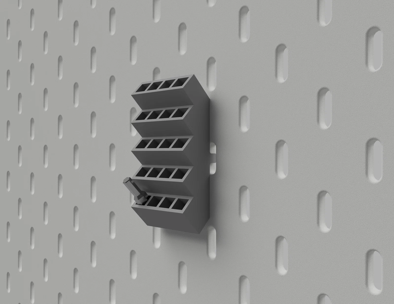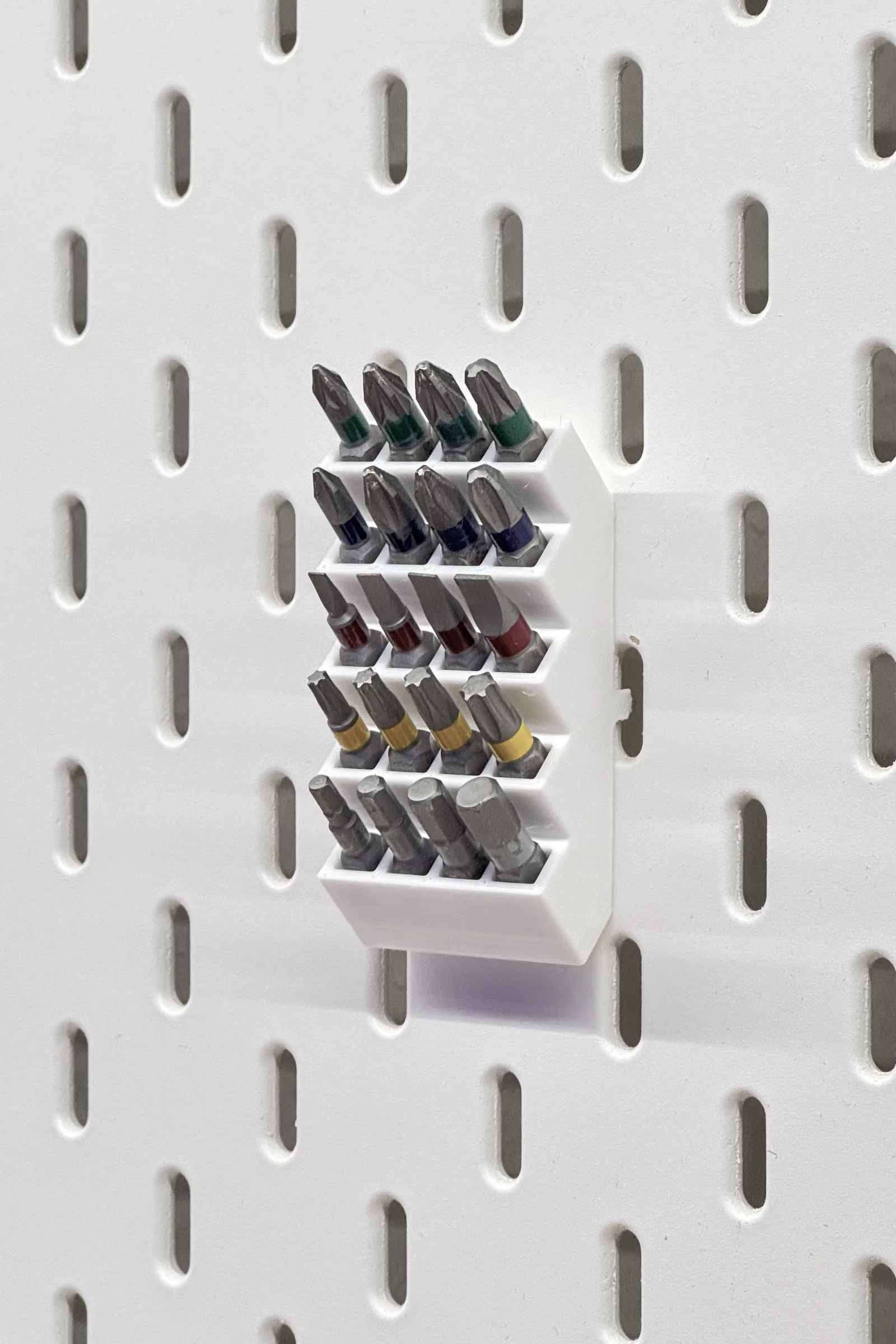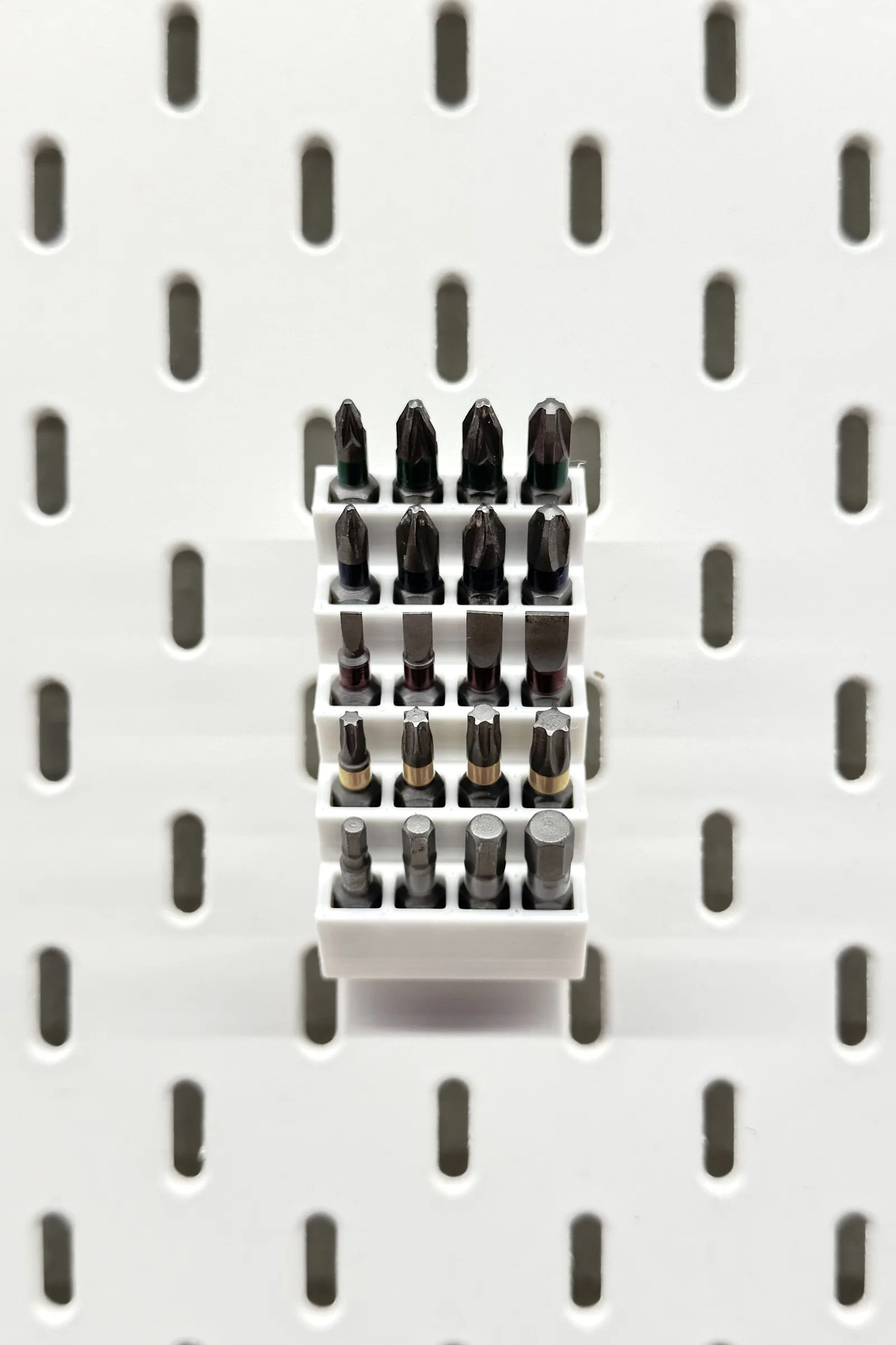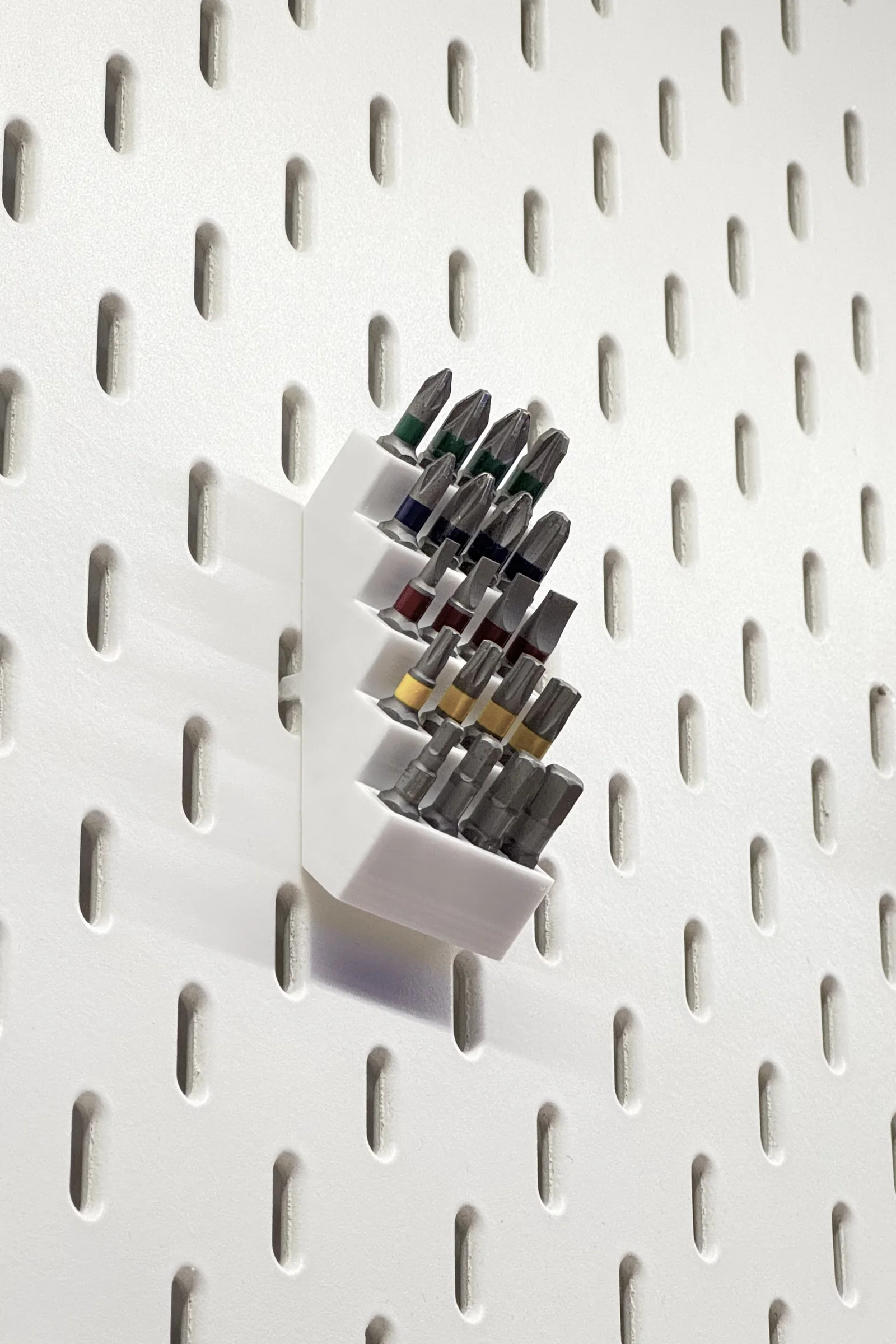 Giữ mấy đầu bits của bạn gọn gàng và luôn trong tầm tay với bộ giữ bit được thiết kế riêng cho pegboard IKEA SKÅDIS. Mẫu 3D này chứa được tối đa 20 bits và lắp vào hệ SKÅDIS hiện có của bạn một cách “mượt”.