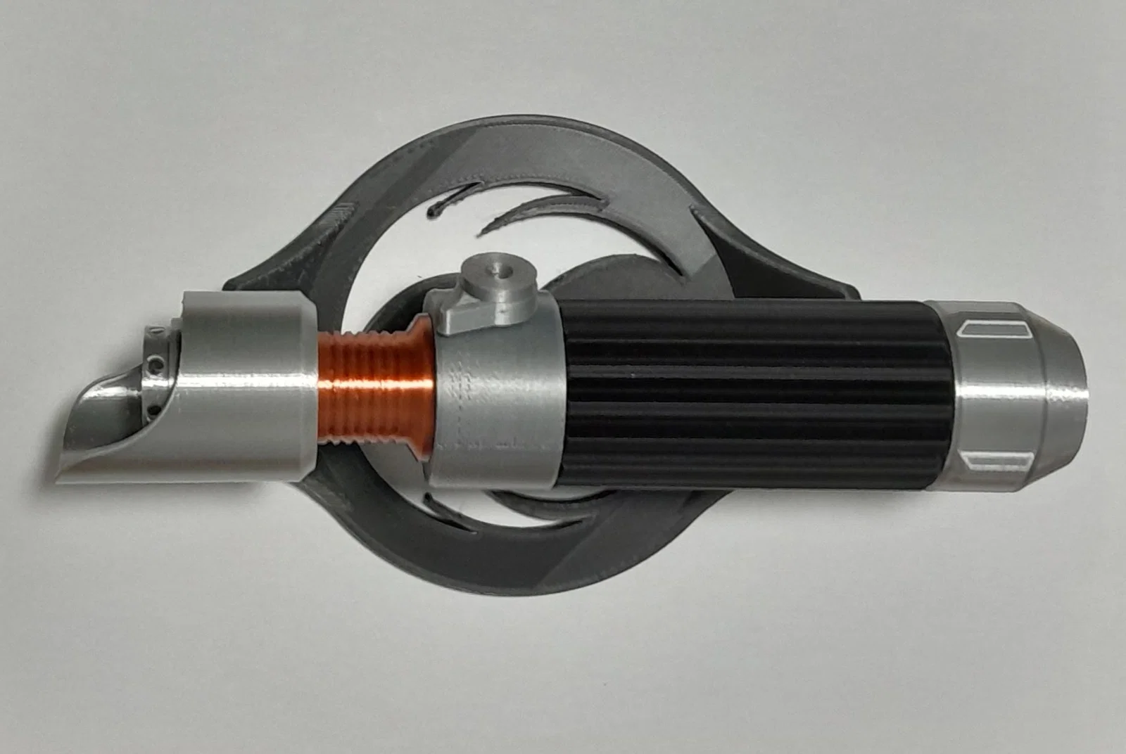 - Emitter và pommel có chiều dài ren nhiều hơn mức cần để vặn chắc. Bạn chỉ cần chừa khoảng 1cm mỗi đầu core là đủ để cố định. Mình để dư để tăng độ đa dạng; nếu bạn muốn ít phần hơn hoặc chuôi ngắn hơn thì không nhất thiết phải in spacer.