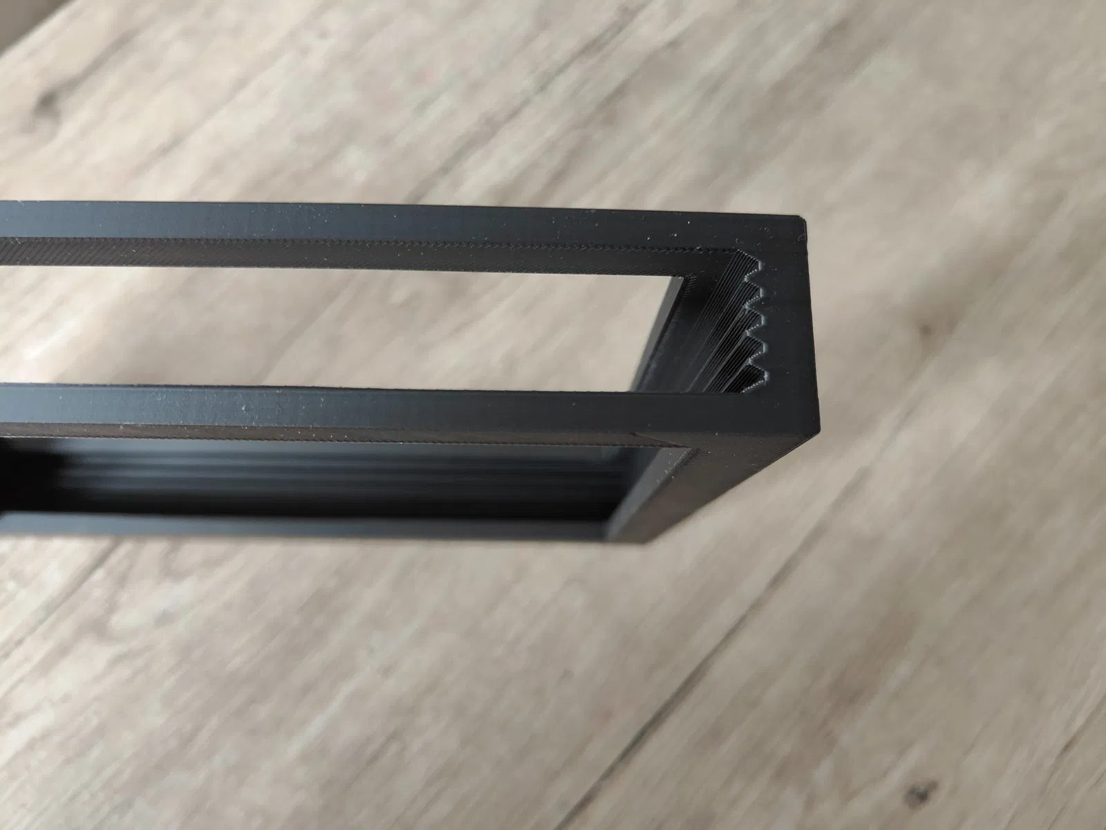 Để có một bề mặt hoàn thiện mịn màng, hộp này tốt nhất nên được in phẳng với mặt trước trên bệ in sử dụng hỗ trợ thông thường. Tăng khoảng cách Z trên của hỗ trợ lên 2.2 hoặc thậm chí 2.4 để dễ dàng gỡ bỏ hỗ trợ.