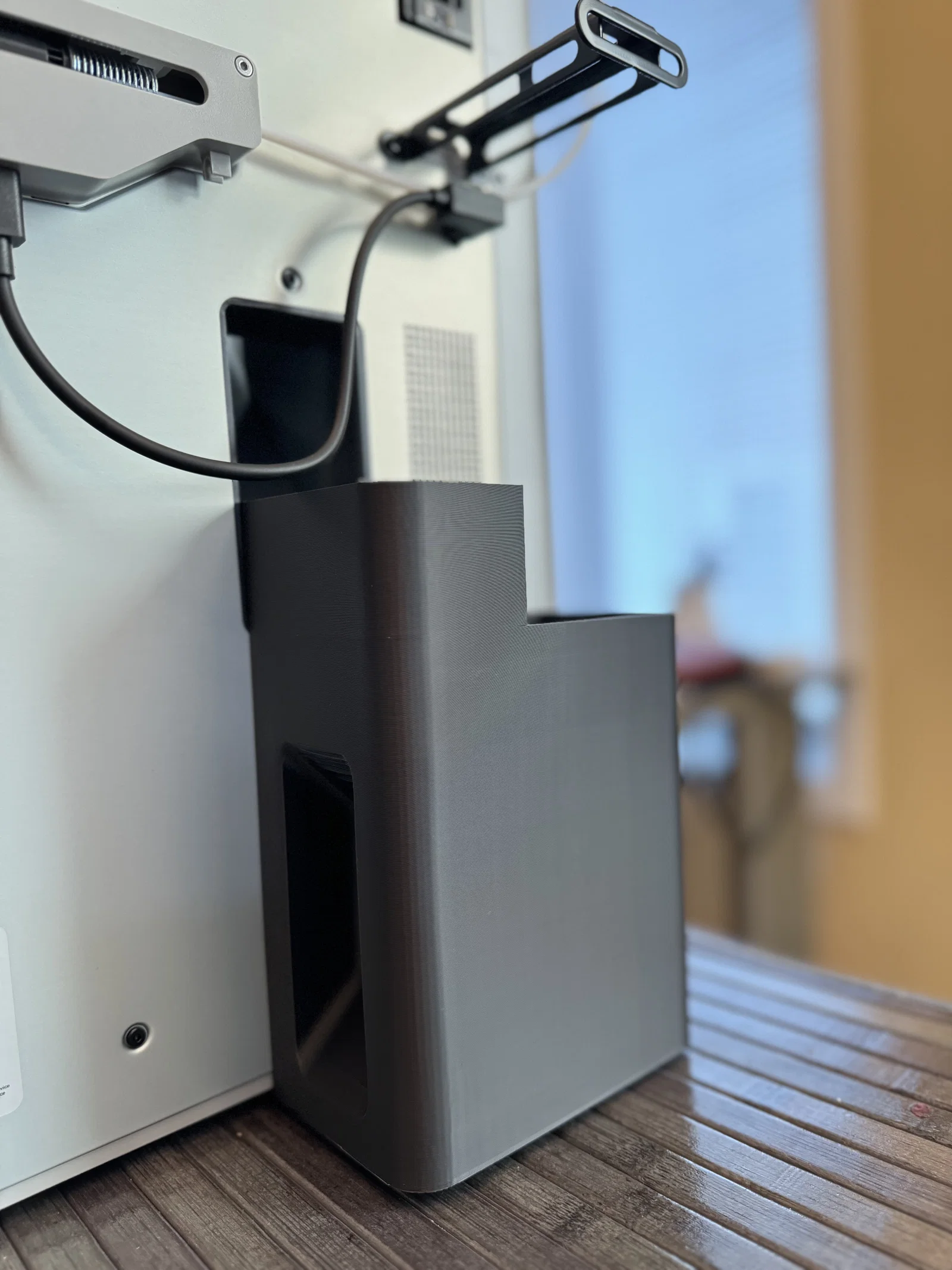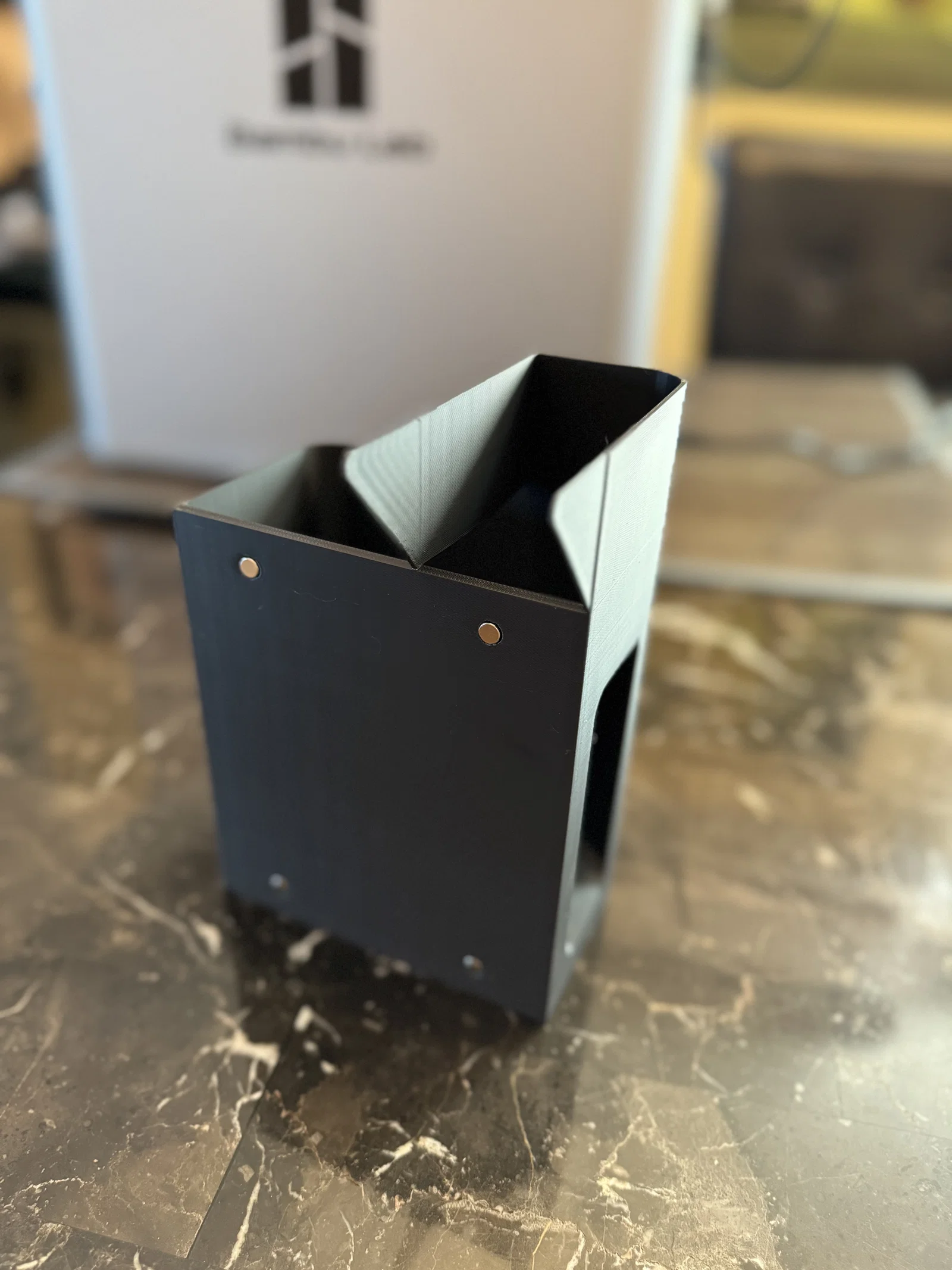 Poop chute này hứng phần filament thải khi nó rơi ra từ máy in Bambu Lab X1. Đây là một khay/hộp kích thước lớn hơn so với thiết kế khác của mình.