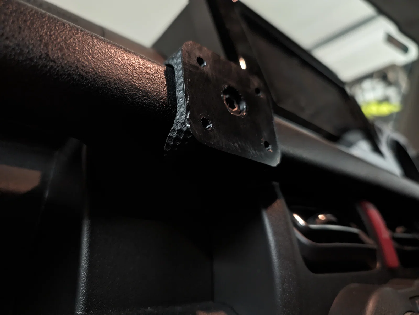 Mình phải làm vài phiên bản để chỉnh góc cho đúng. Mình không nghĩ đây là fit hoàn hảo, nhưng cũng khá sát rồi. Lỗ bắt trên taplo có vẻ bị lệch so với phương vuông góc khoảng 5 độ. Khuyến nghị dùng một con ốc M8 x 25mm socket head cap screw để bắt vào taplo.