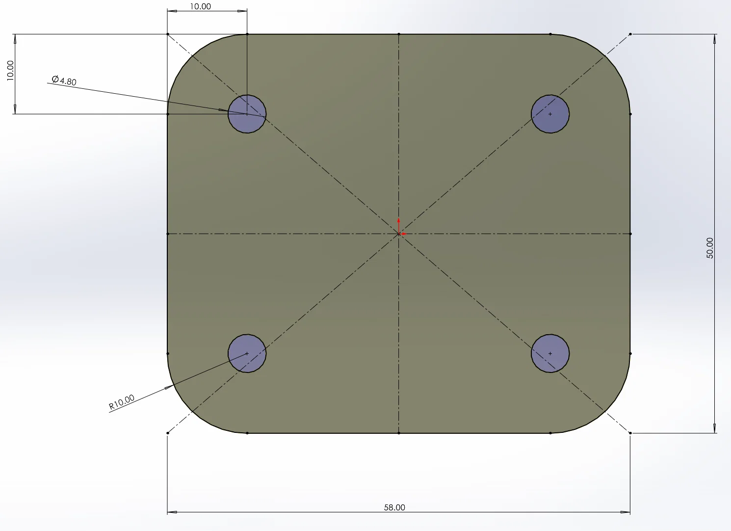 Cụ thể, mình muốn dùng đế hình chữ nhật 4 lỗ mà Quad Lock bán, nên bề mặt lắp được tạo hình đúng theo đế đó. Nếu bạn muốn làm giống vậy, bạn sẽ cần 4 con ốc M5 x 12mm countersunk để bắt đế vào bản in. Còn nếu bạn tự làm giao diện lắp (mounting interface) của riêng mình, và dùng button top, socket head cap screw, hoặc các loại ốc không phải countersunk, thì mình khuyên đừng dùng dài quá tầm 8mm. Mình có đính kèm ảnh chụp màn hình phần interface đó nếu bạn muốn tự thiết kế.