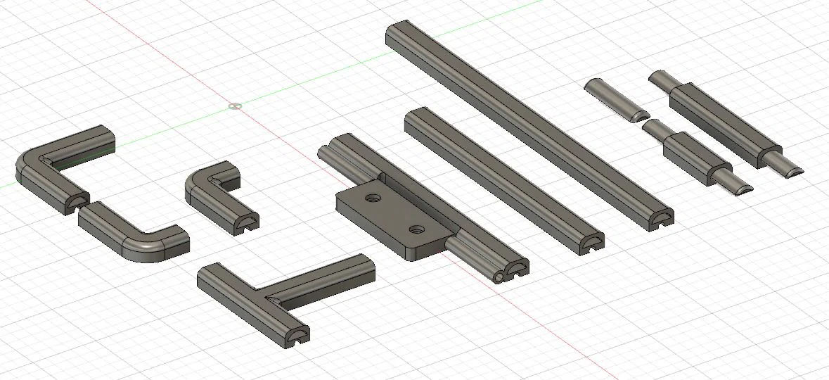 Bộ chi tiết gồm góc nối, ngàm chữ T và các thanh nhiều độ dài kèm khớp, giúp lắp lưới chống muỗi theo kích thước mong muốn. Có thể dùng khớp để làm cửa hoặc để cố định lưới bằng nẹp/ron PVC 0.5 m.