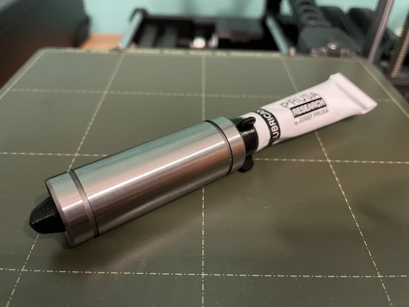 Bản remix dụng cụ đơn giản để bơm/bôi lubricant cho bạc đạn LM10LUU trên Prusa Mini/Mini+. Có thêm nắp (cover) tương thích bản LM10UU gốc và que vệ sinh để lấy phần lubricant còn dư.