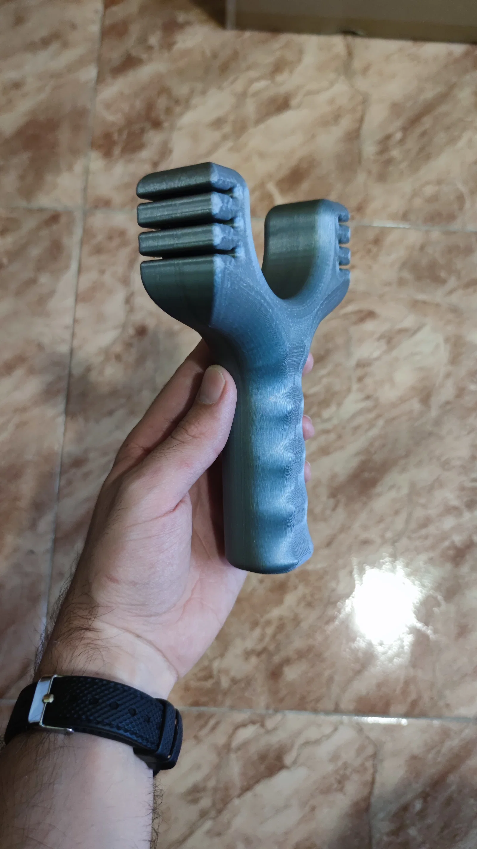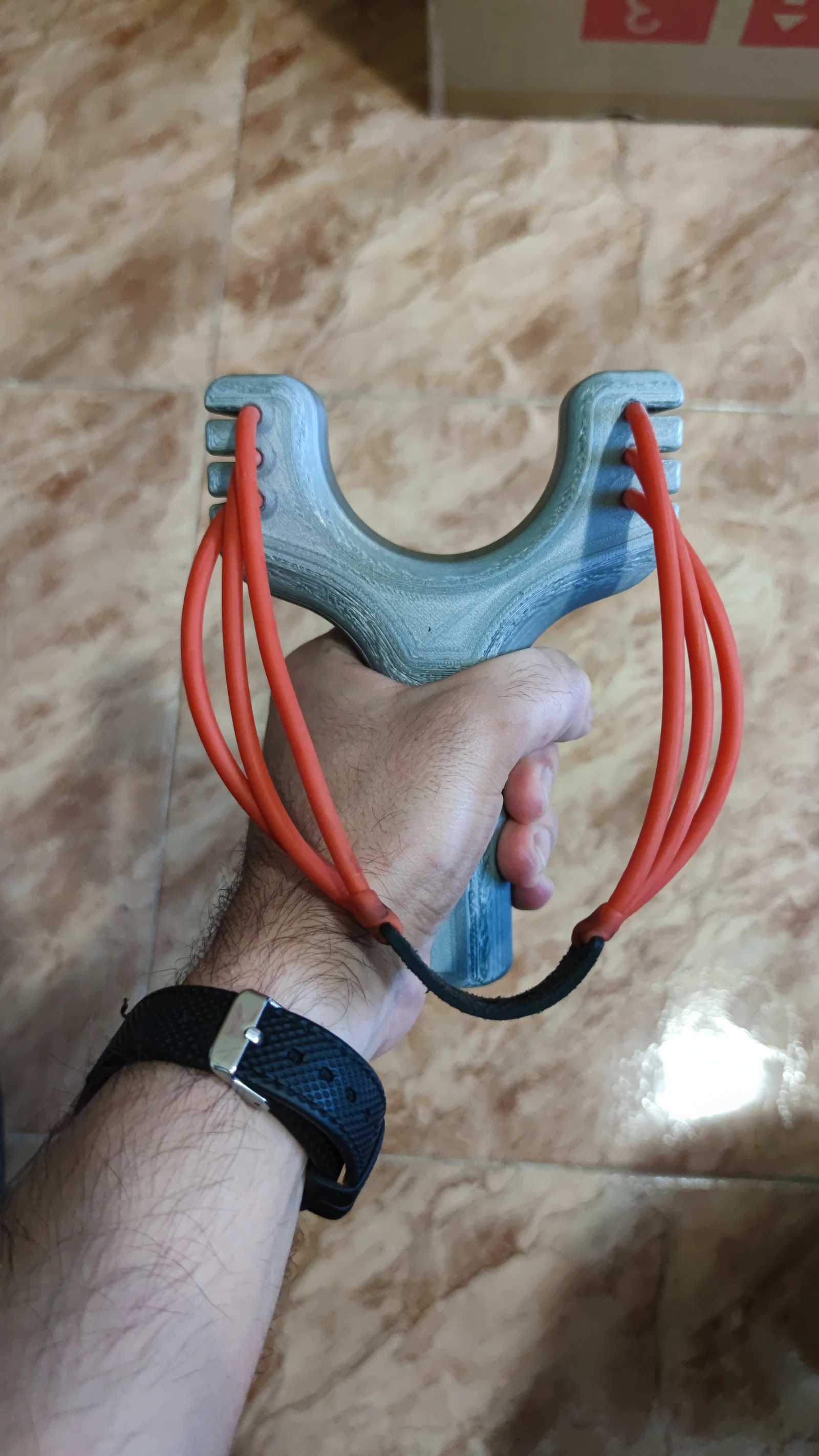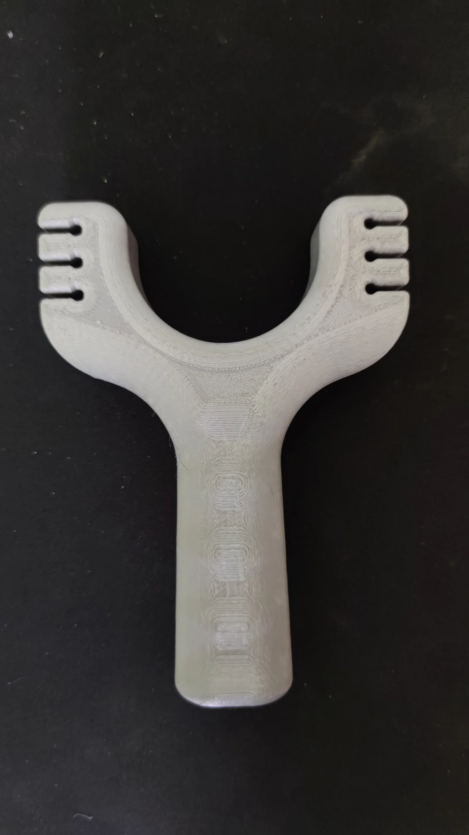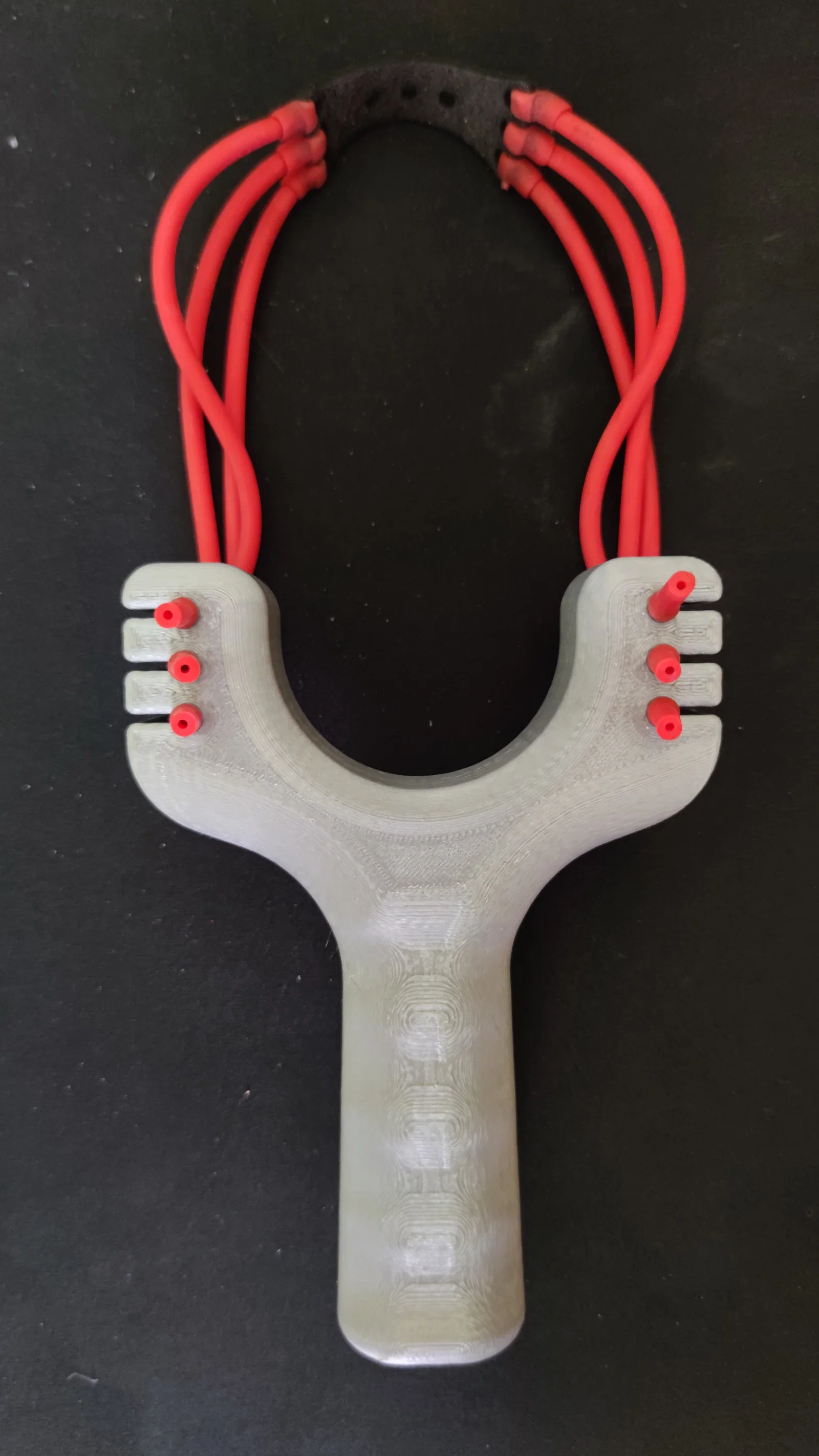 Mẫu ná cao su chắc chắn, thiết kế để gắn tới 6 dây thun. Khuyến nghị in theo chiều ngang để tăng độ bền. Tác giả đã in PETG, nhiều khả năng PLA cũng dùng ổn; có kèm thông số in và gợi ý chọn dây thun.