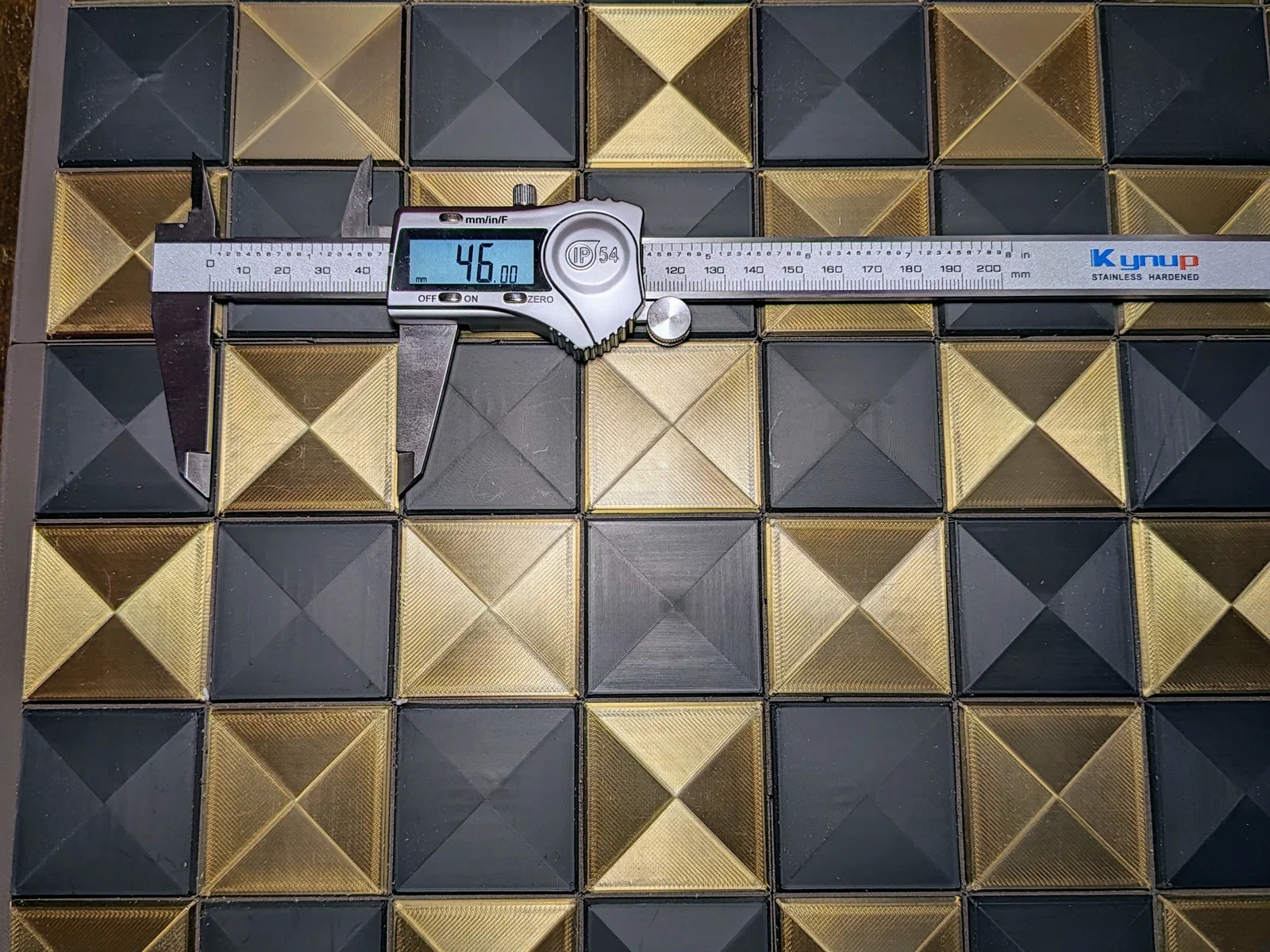 Đây là một bàn cờ kích thước đầy đủ 390mm x 390mm / 15.5" x 15.5" (cờ vua hoặc cờ draughts / checkers) với các ô (tiles) rời có thể tuỳ biến, và tất cả đều lắp ráp được mà không cần keo. Mẫu được thiết kế bằng OnShape CAD và in với Orca Slicer.