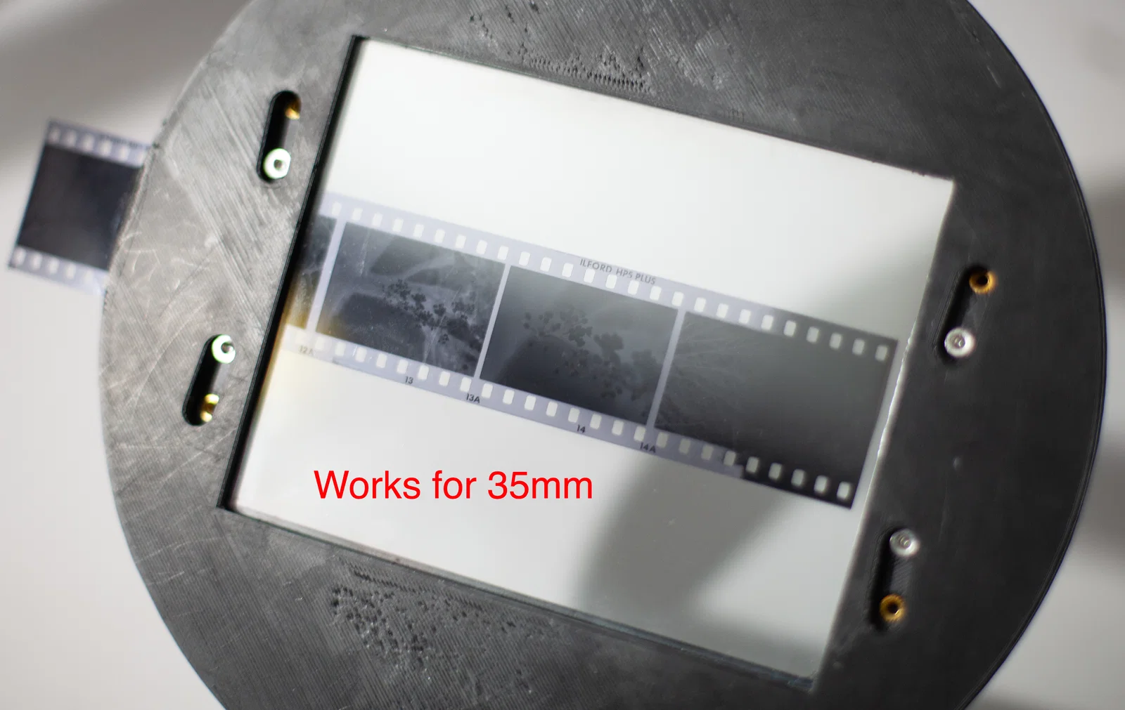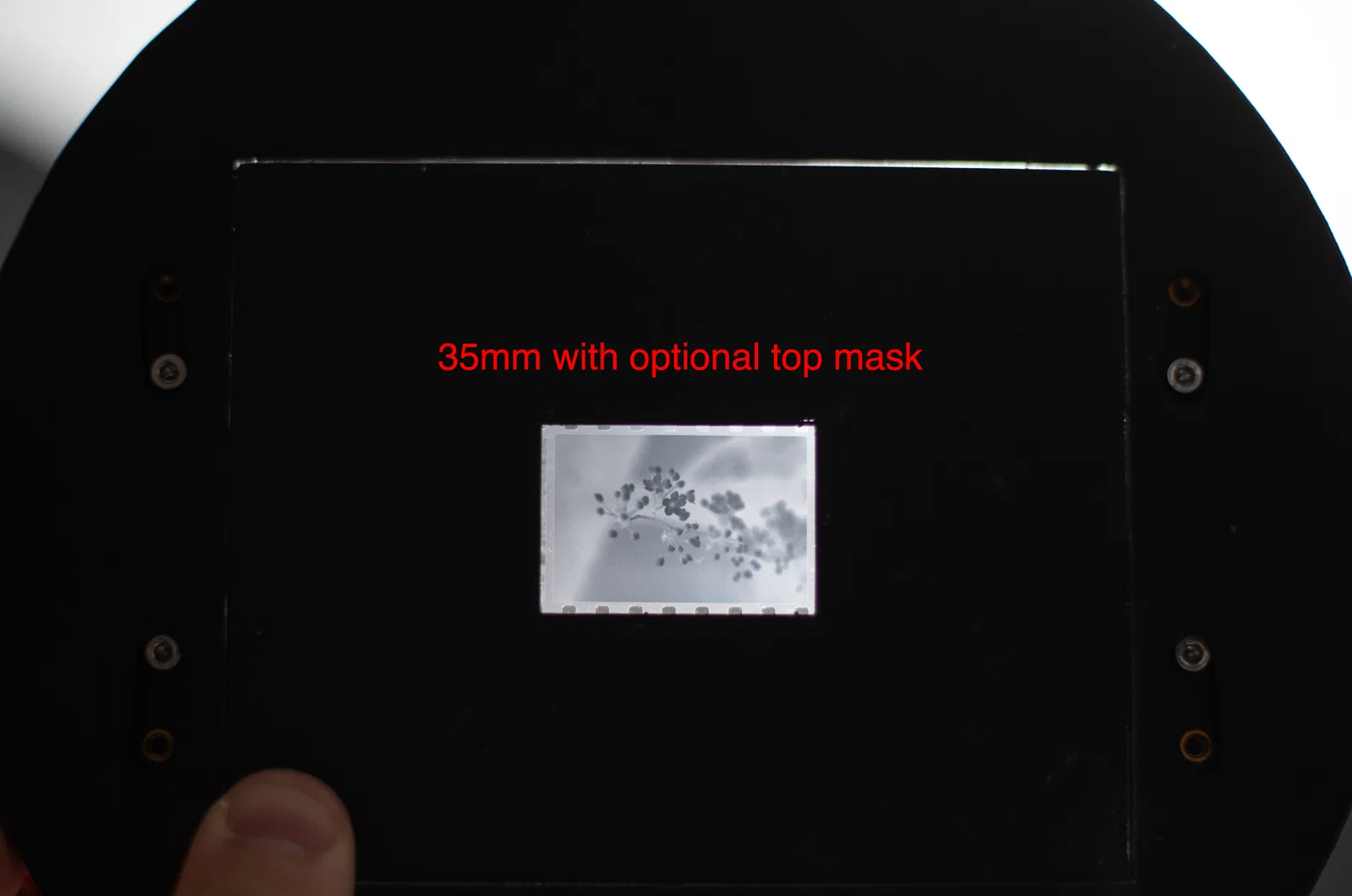 - Cuối cùng, vặn thêm 4 con vít M3 vào mặt đáy của Base (vặn trực tiếp vào nhựa). Chúng đóng vai trò như gờ định tâm (centering lugs) để negative carrier không bị trượt khi đặt vào đầu enlarger (giống như trên negative carrier zin/OEM). Mấy con này gần như không cần tháo ra, nên mình không dùng heat set threaded inserts.