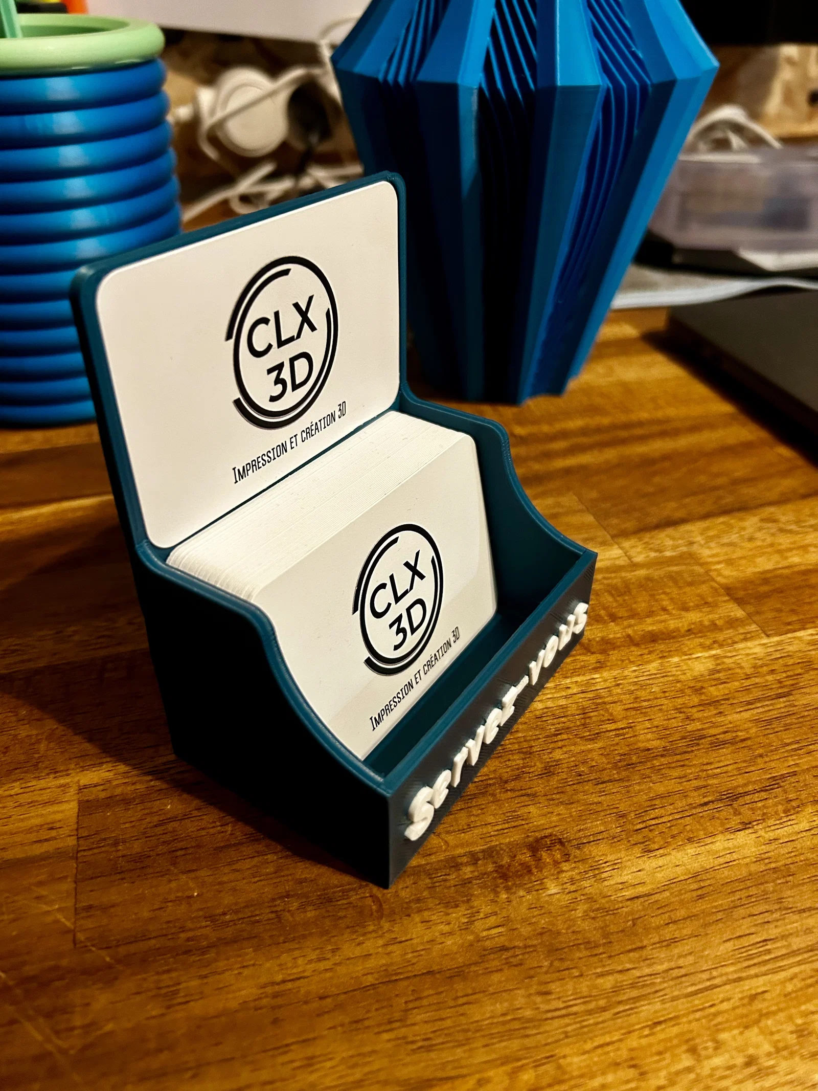 Nâng tầm sự chuyên nghiệp với mẫu khay đựng danh thiếp 3D được thiết kế tinh tế, tối ưu cho kích thước chuẩn 55x85mm. Sản phẩm sở hữu cấu trúc thông minh hai tầng, giúp bạn vừa trưng bày danh thiếp mẫu một cách ấn tượng, vừa cung cấp không gian dự trữ đủ rộng để khách hàng dễ dàng tự lấy. Phụ kiện này là lựa chọn tuyệt vời cho các buổi hội thảo, sự kiện hoặc đặt ngay tại quầy lễ tân văn phòng. Với thiết kế hiện đại, bền bỉ khi in bằng vật liệu PLA, khay không chỉ giữ cho danh thiếp của bạn luôn gọn gàng mà còn góp phần khẳng định phong cách làm việc ngăn nắp, sang trọng. Hãy in ngay để tạo dấu ấn chuyên nghiệp cho thương hiệu của chính mình.
