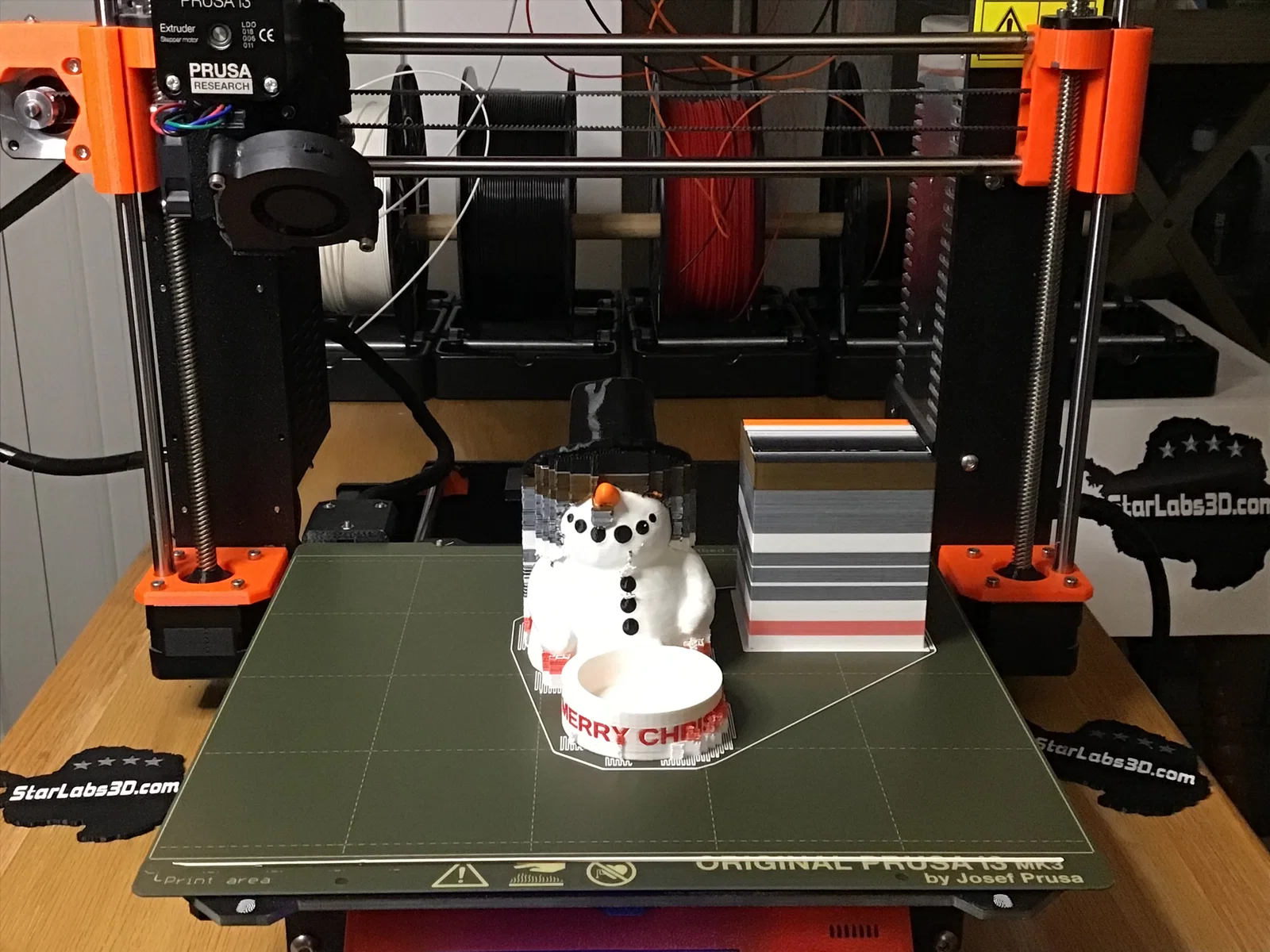 Snowman Tealight có 2 phiên bản: bản 1 dành cho máy in 1 sợi filament, bản 2 (MMU) cho máy in đa vật liệu. Phù hợp làm đồ trang trí Noel và giá/đế đặt tealight.
