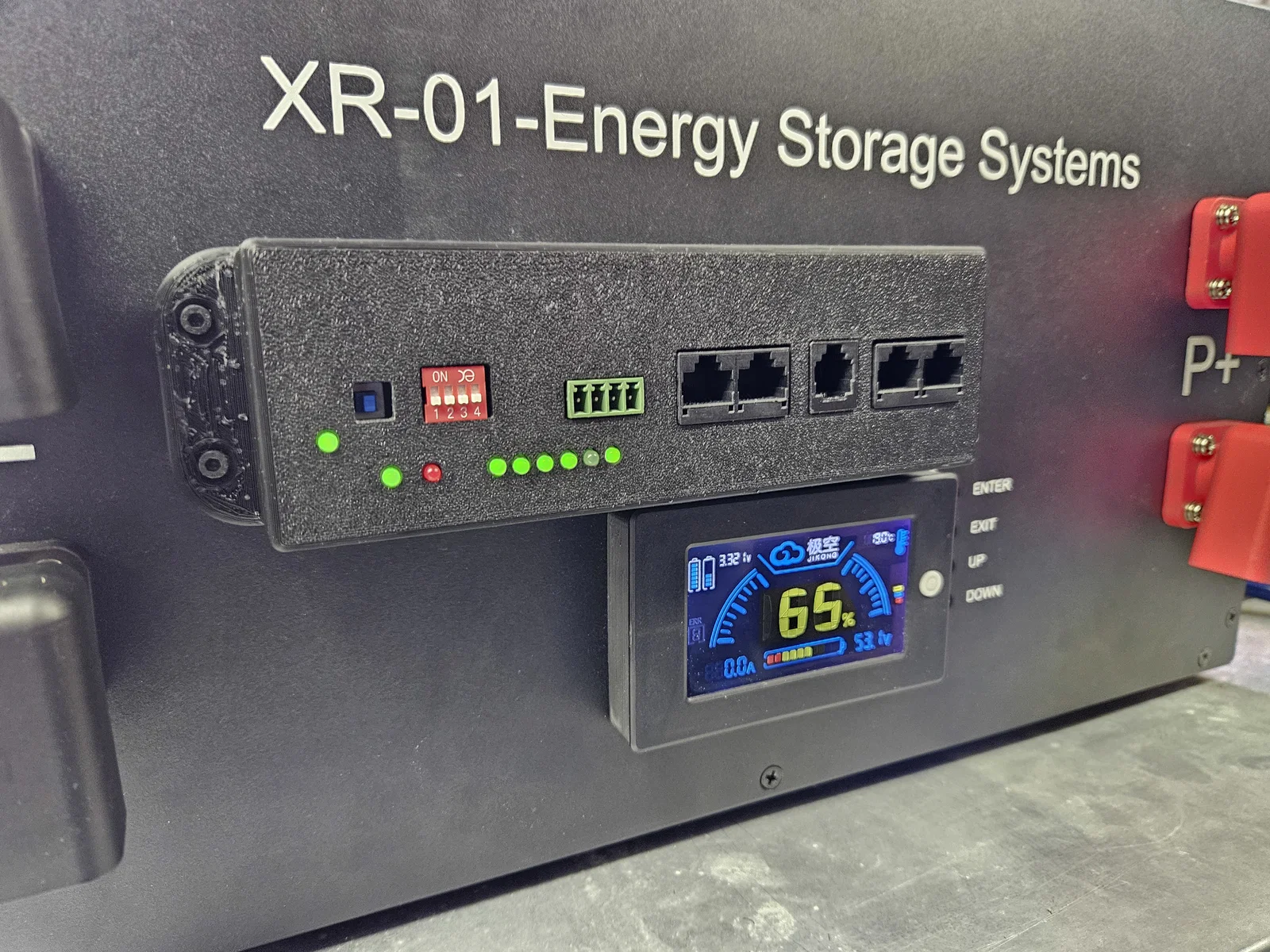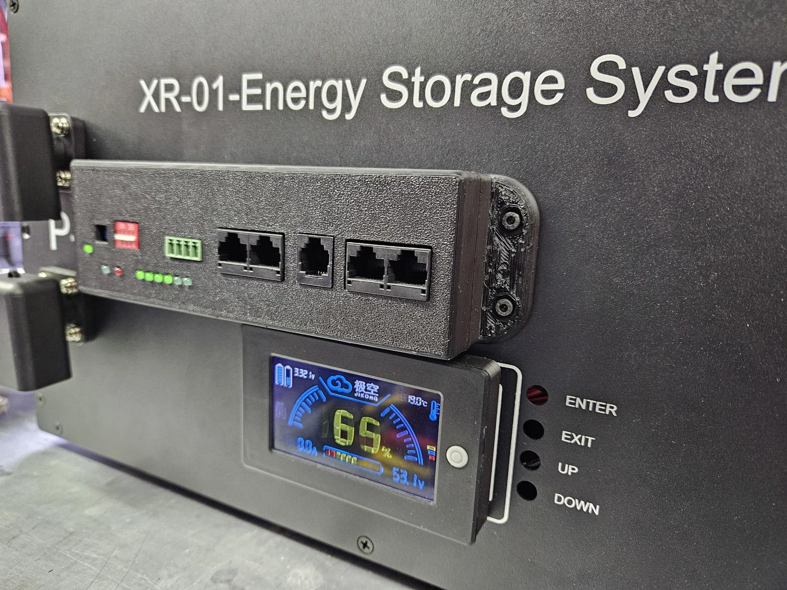 Nó khớp với vị trí lắp màn hình có sẵn trên đa số battery box. Mình dùng để gắn JK inverter BMS và thêm màn hình LCD 3.2". Giá đỡ được cố định bằng cái bracket phía sau. Màn hình bấm/click vào giá đỡ. Lỗ khoét nên trùng vị trí công tắc, dây cáp sẽ đi xuyên qua đó. Nếu nút nguồn nằm chỗ khác, khoan thêm lỗ phù hợp để luồn dây.