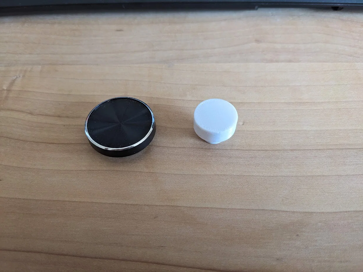 Phiên bản nhỏ hơn của núm xoay radio xe hơi JVC, giúp tránh vô tình chạm trúng khi bấm chuyển bài. Khuyến nghị in PETG để chịu nhiệt trong xe; PLA cũng có thể dùng được.
