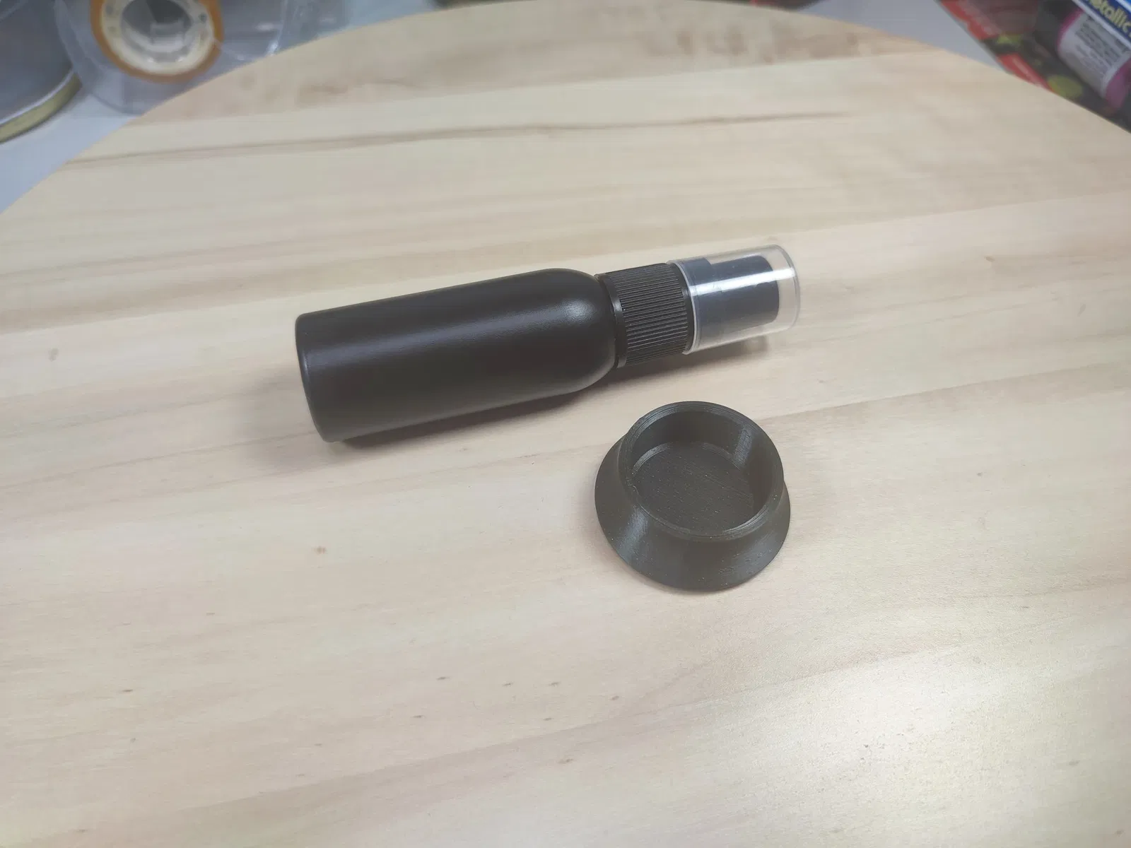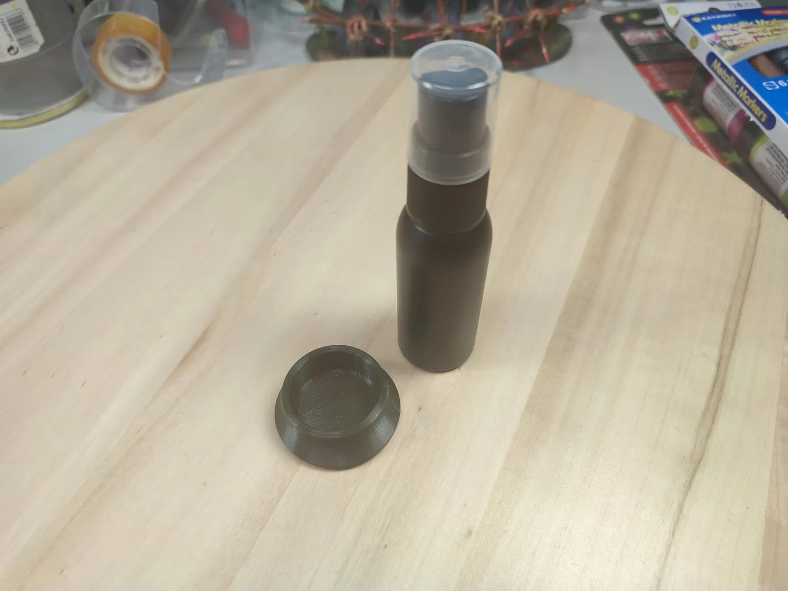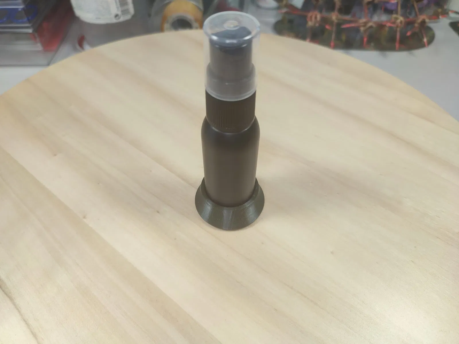 Tôi sử dụng một chai xịt 28mm cho isopropyl alcohol của mình, nhưng đôi khi nó bị lắc lư, đặc biệt là khi gần hết. Vì vậy, tôi in một cái đế để làm cho nó ổn định hơn.