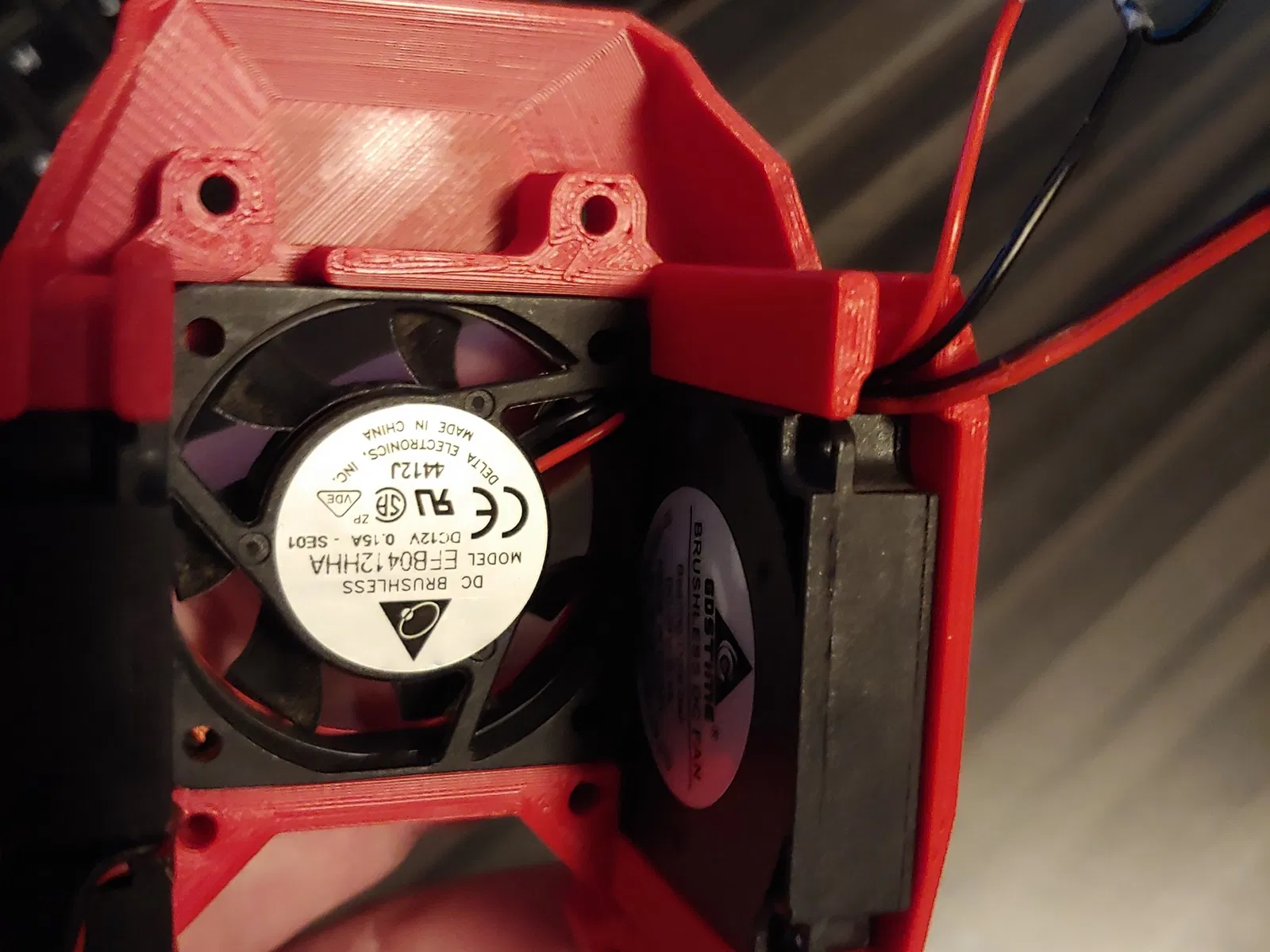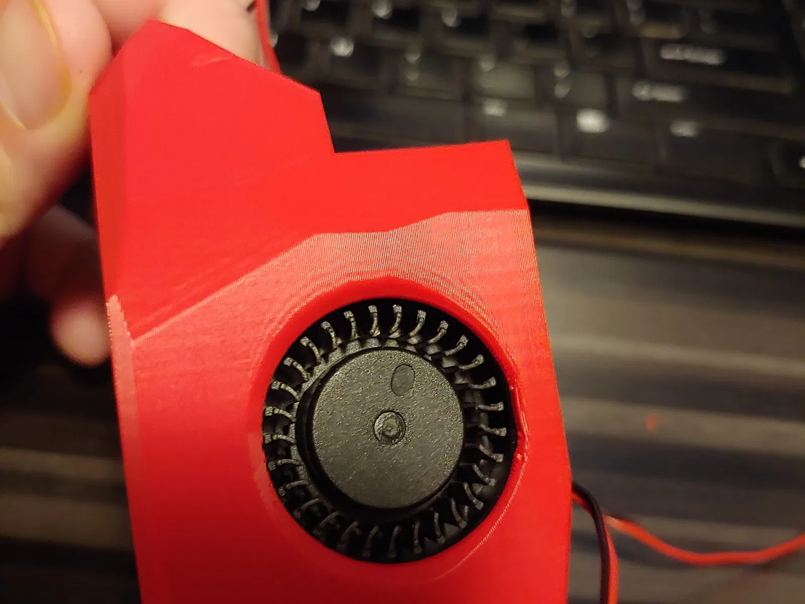 Các ống làm mát của vỏ quạt gốc dường như quá hạn chế đối với tôi và những bình luận của người khác khiến tôi tin rằng việc làm mát là không đủ. Vì vậy, tôi đã thêm một số ống lớn hơn ngoài những ống ban đầu. Với quạt GDStine 12.000 rpm, có vẻ như nó thổi rất nhiều không khí và hướng nó đến đúng chỗ, nhưng tôi chưa hoàn thành việc xây dựng máy in và chưa in với nó.
