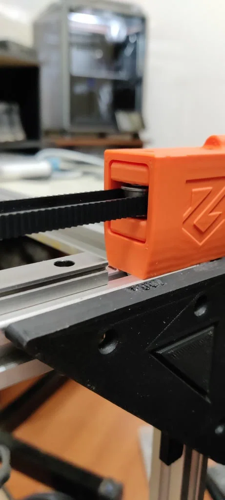Phần main body được cố định vào frame, còn độ căng thì chỉnh bằng con vít M3 dài 20mm ở giữa. Cái lò xo có nhiệm vụ giữ/giảm lực bật ngược (rebound) có thể xảy ra trên dây belt do chuyển động của máy.