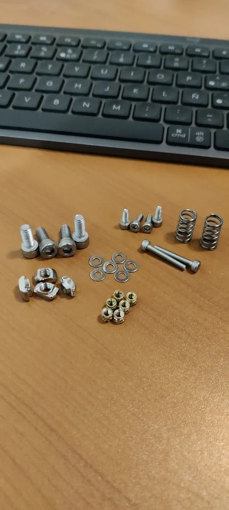 Lò xo đặt giữa sliding tensioner và cái cap, hoạt động giống như một spring loaded screw (M3 20mm).